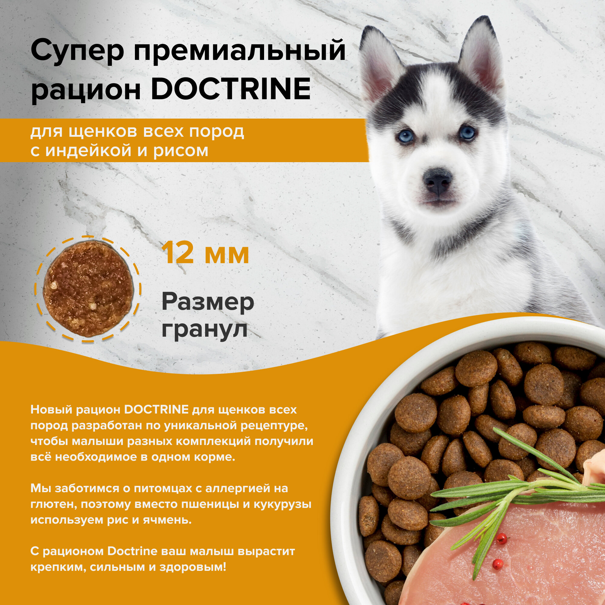 Корм сухой Doctrine полнорационный для щенков всех пород, с индейкой и рисом, 18 кг