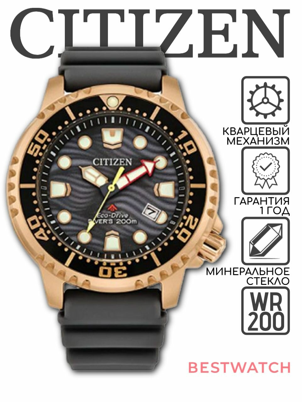Наручные часы CITIZEN Promaster, черный, красный