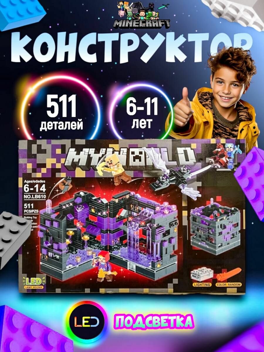 Конструктор/ My World/ Майнкрафт/ Minecraft с Led подсветкой/ 712 деталей/ LB645/ девочке/ мальчику