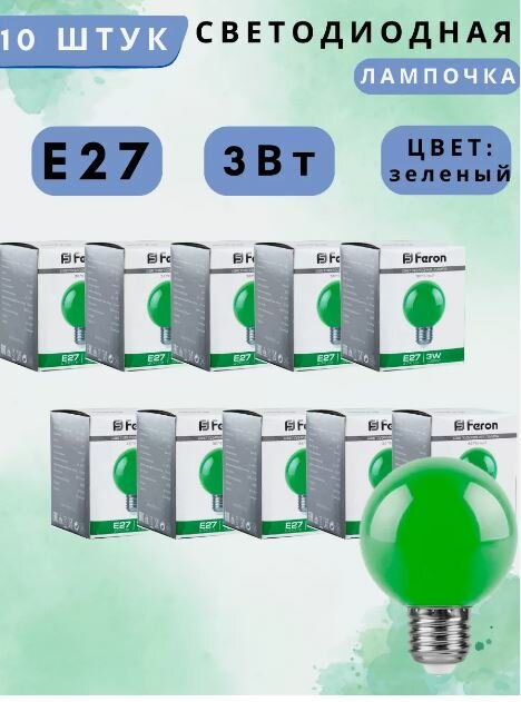 СохранитьСветодиодная лампочка Feron, шар, E27, 3W, зеленый свет, 10 штук, IP20 интересное: