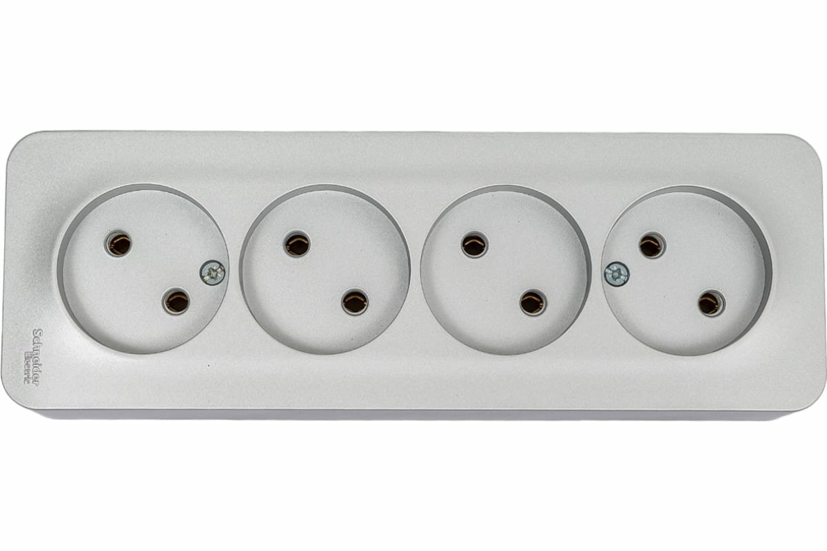 Розетка Schneider Electric Blanca 4 гнезда без заземления без шторок алюминий для открытой проводки (комплект из 2 шт)