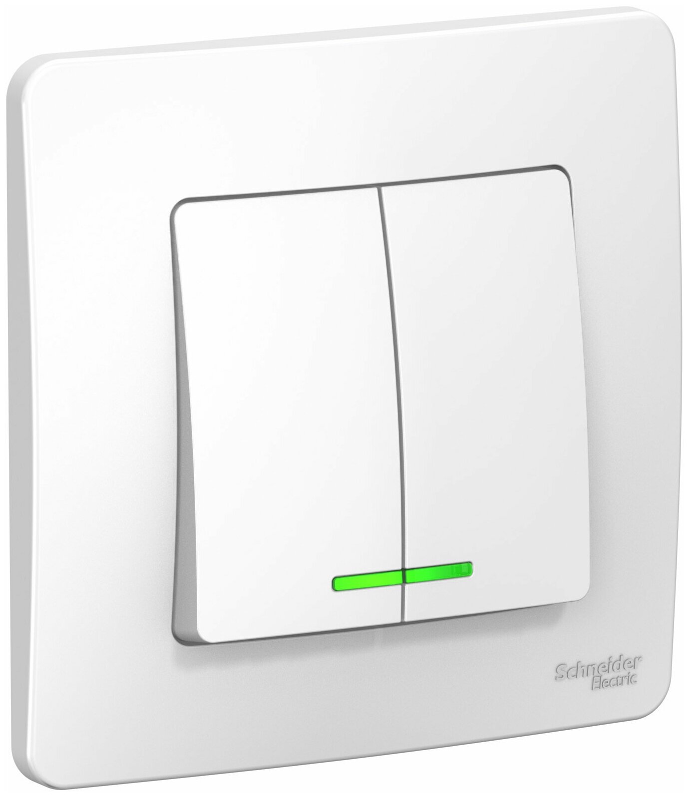 Выключатель внутренний SCHNEIDER ELECTRIC 2-клавишный с подсветкой, 6А, 250В SE Blanca Молочный, BLNVS006512