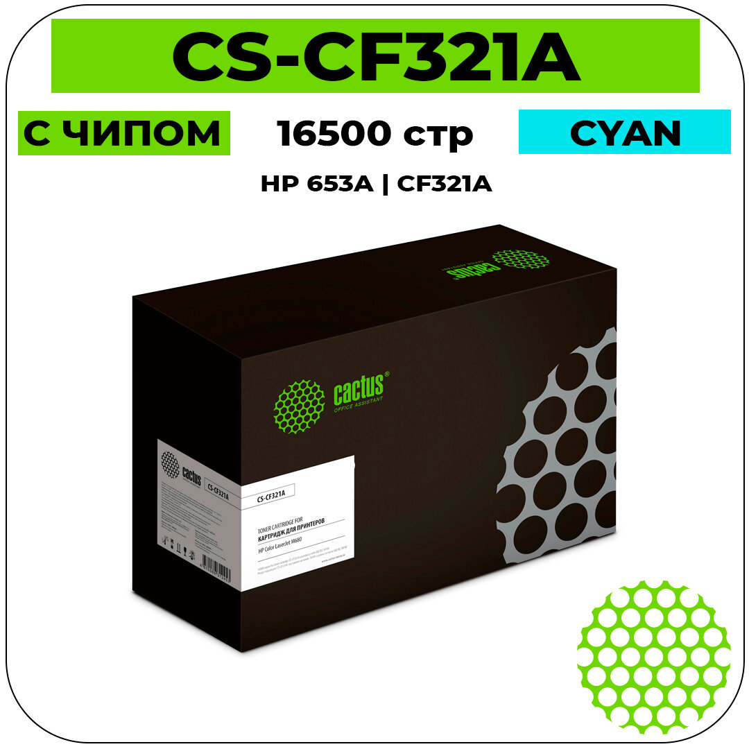Cactus CS-CF321A картридж лазерный (HP 653A - CF321A) голубой 16500 стр