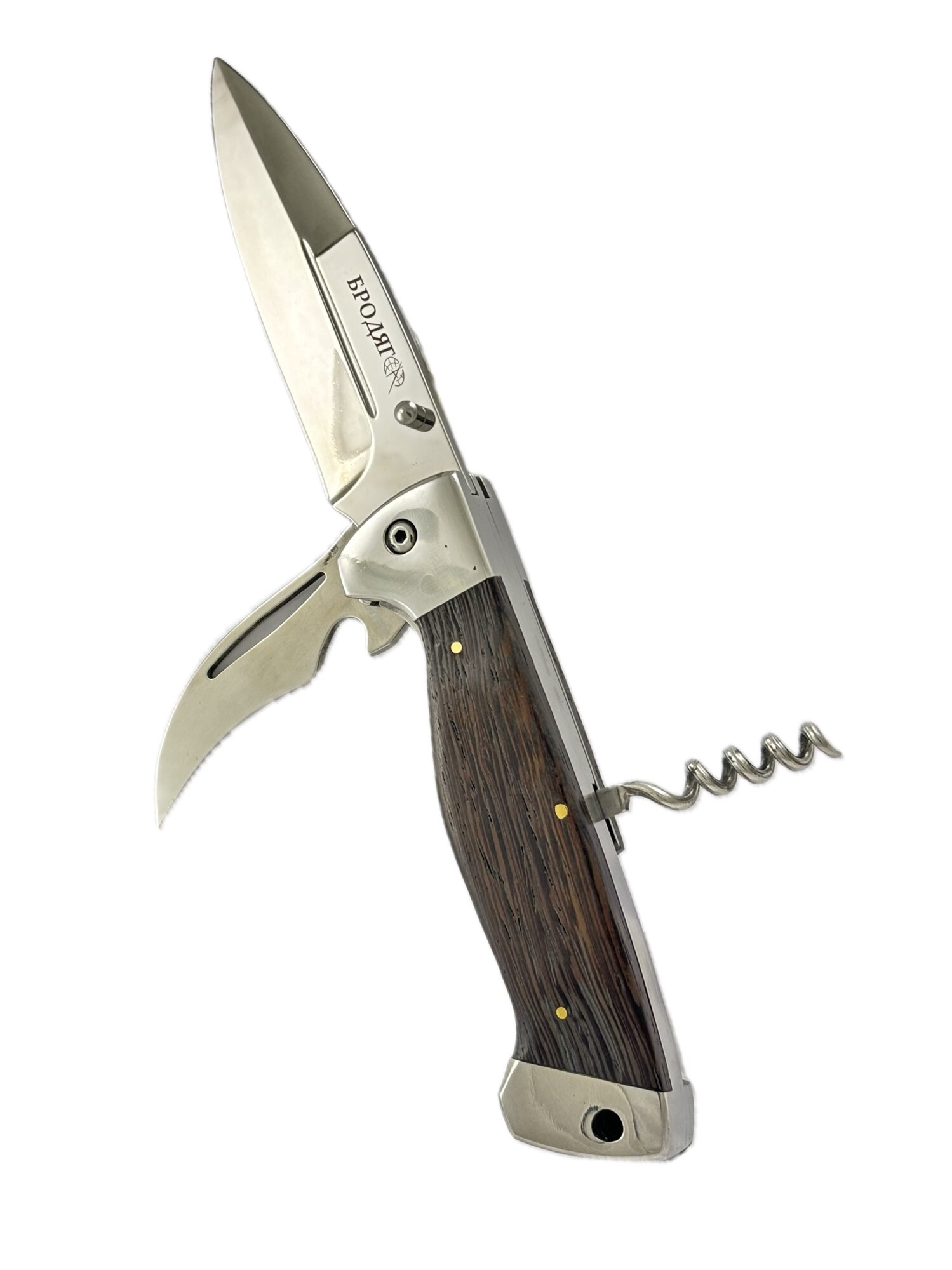 | Минусы: | Громоздкий, не заточена открывашка для консервов и сильно выпирает из рукоятки, из-за этого не удобно лежит в руке! |