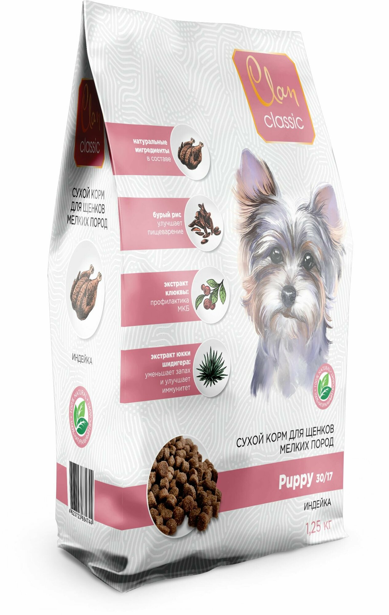 Корм для щенков мелких сухой CLAN Classic Puppy 30/17, индейка, 1.25кг