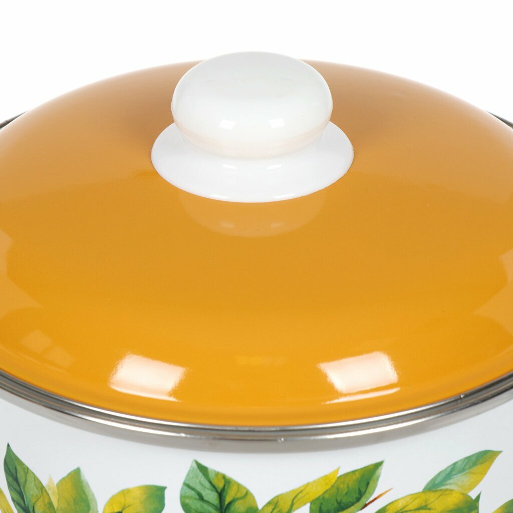 Кастрюля эмалированная сталь, 4 л, с крышкой, крышка сталь, СтальЭмаль, Грушевый сад, 6RD201M, белоснежная