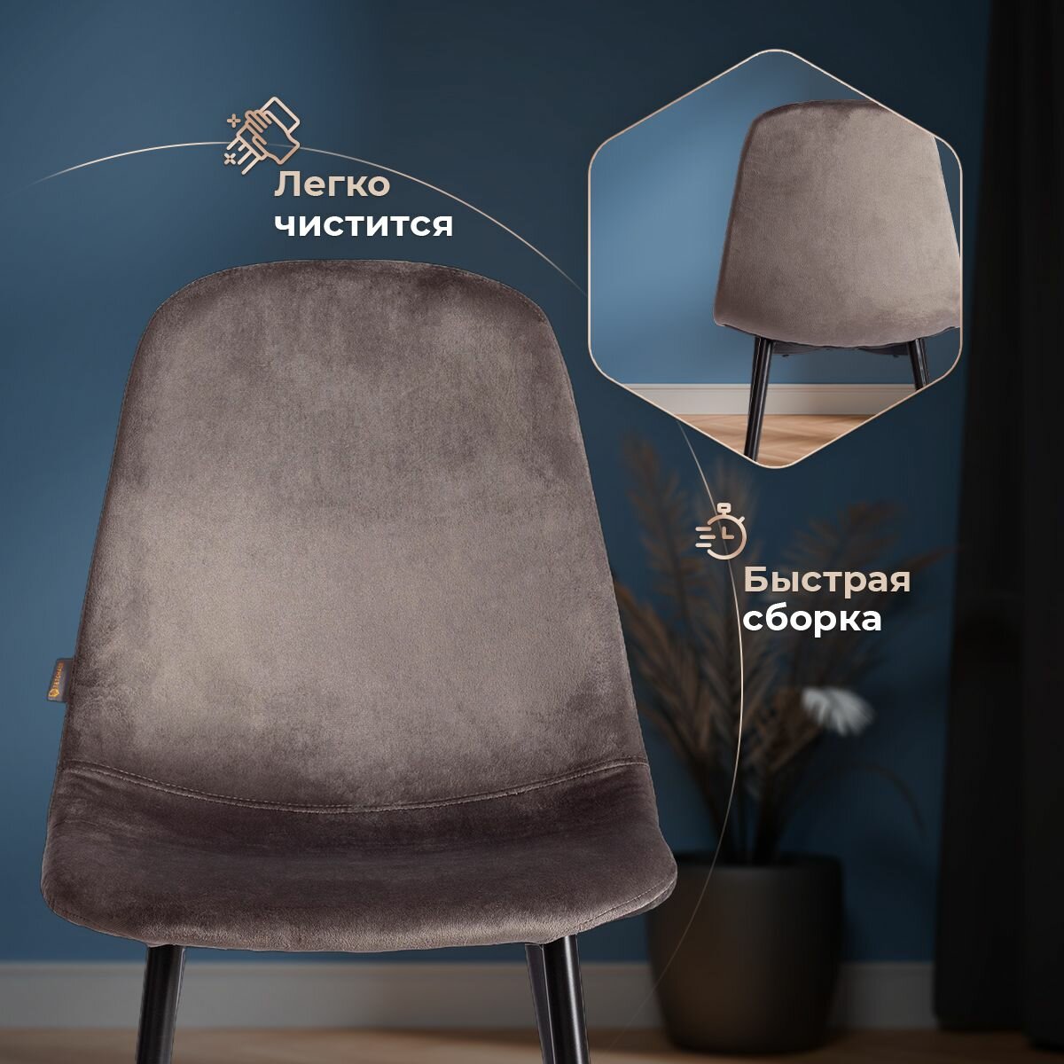 Стул BREEZE (mod. 4724) / 1 шт. в упаковке (19 608) TetChair вельвет/металл, 44 х 53 х 87 см, Brown (коричневый) HLR11 / орех