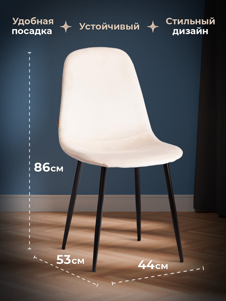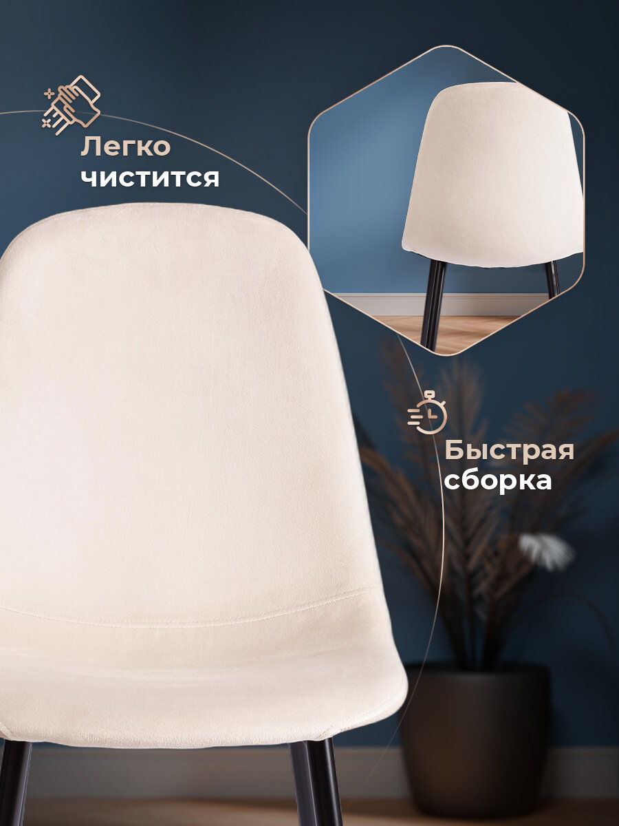 Стул BREEZE (mod. 4724) Велюр/металл , 44 х 53 х 87 см, Light beige (светло-бежевый) HLR1 / натуральный (Комплект из 4 шт.)