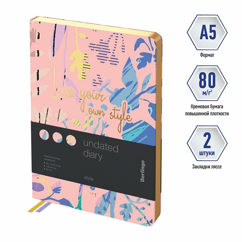 Ежедневник недатированный, А5, 136л., Berlingo "Style", с рисунком