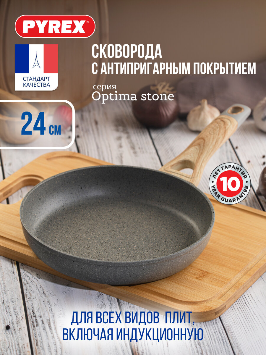 сковорода PYREX Optima Stone 26см антипригарная, кованый алюминий, индукция