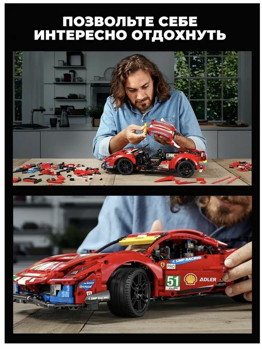 Конструктор Техник Ferrari 488 GTE. Феррари, 1677 деталей, совместим с лего