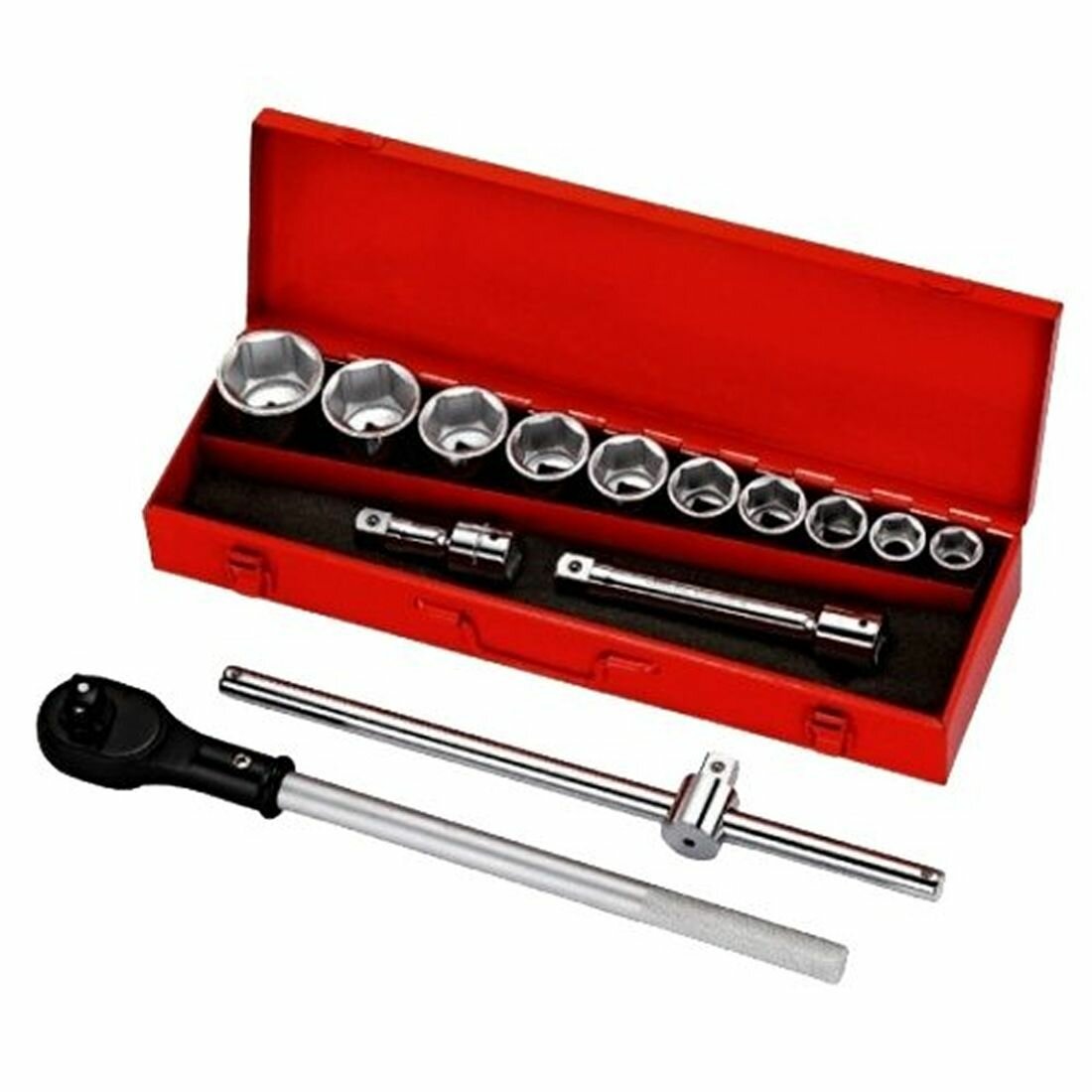 | Головки торцевые подробно | 3/4": 22, 24, 27, 30, 32, 36, 38, 41, 46, 50 мм; удлинитель 3/4": 100, 200 мм; вороток т-образный 3/4": 450 мм; трещотка 3/4": 500 мм |