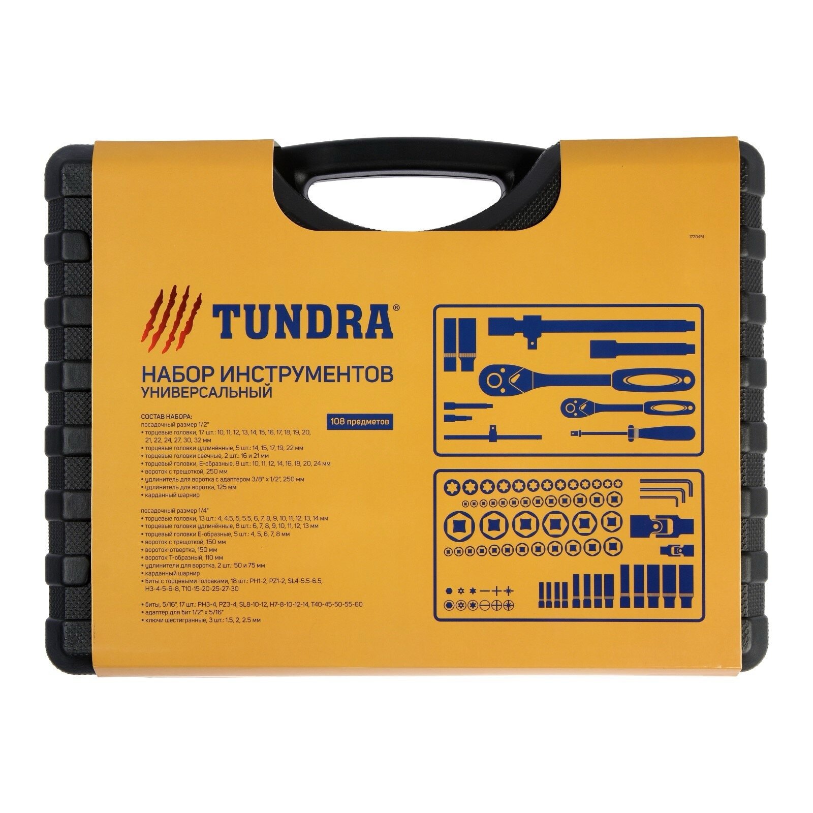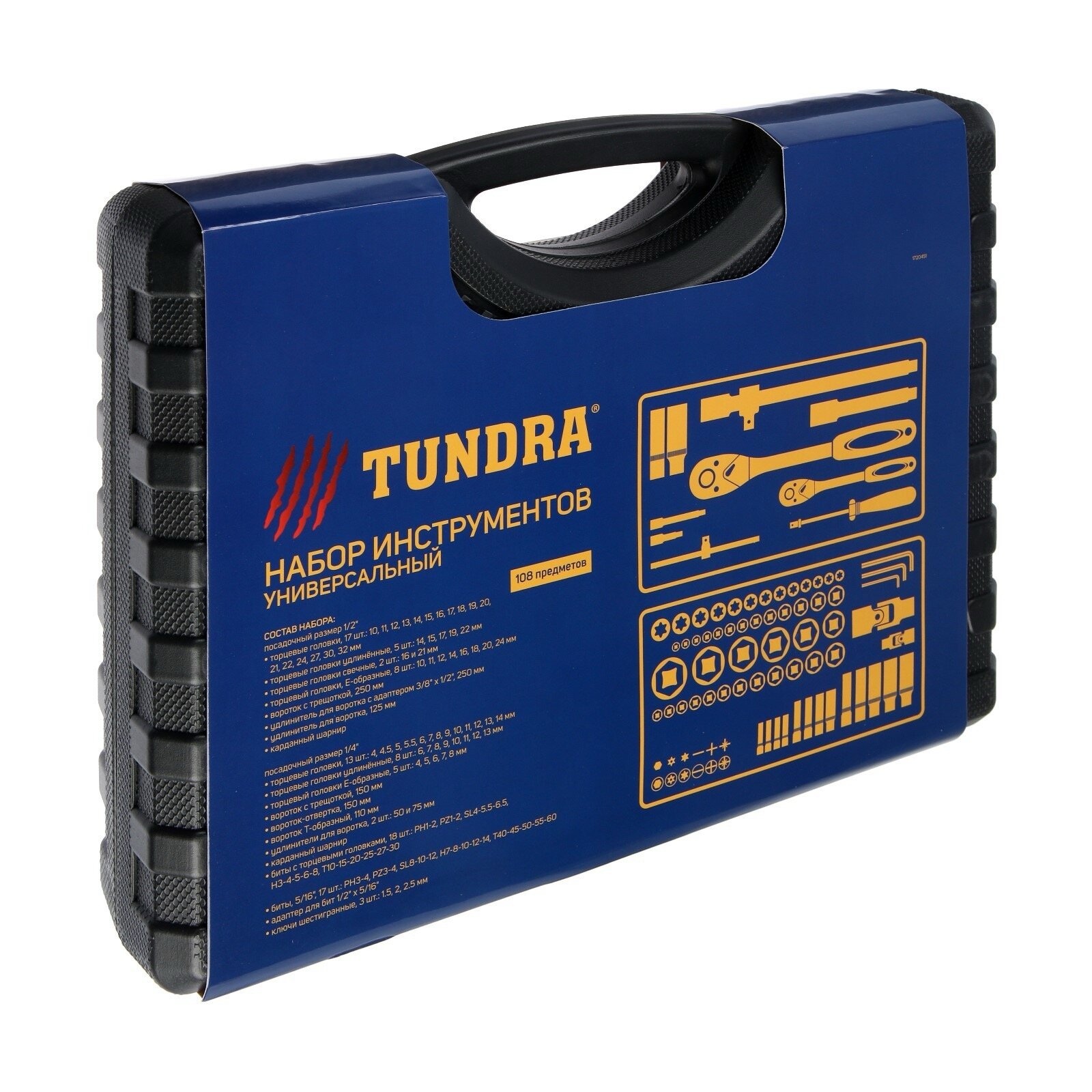 Набор инструментов в кейсе TUNDRA, автомобильный, CrV, 1/2" и 1/4", 108 предметов 1720451 .