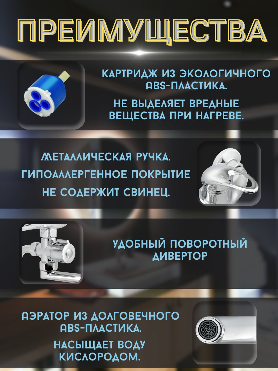| Минусы: | У лейки нет режимов, смеситель из силумина, кран сгнил изнутри в районе картриджа со стороны горячей воды - через год изнутри образовалась дыра и постепенно стала выходить капля воды. |