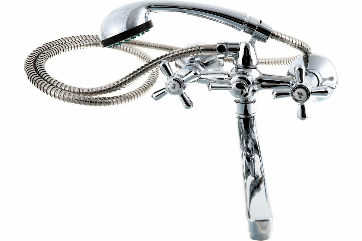 ROEGEN Смеситель для ванны ROEGEN RR120B, двухвентильный, с душевым набором, цинк, хром