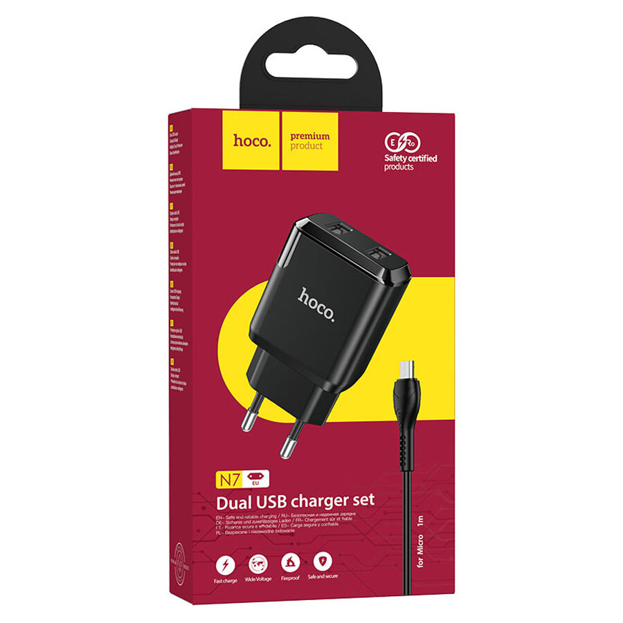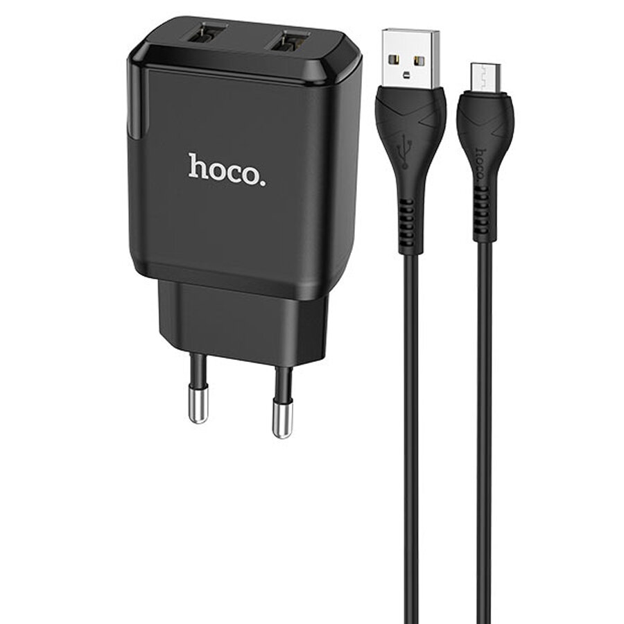 Купить Сетевое зарядное устройство, 2 USB 2.1A 10.5W (N7), HOCO, Micro, Умная зарядка, черный