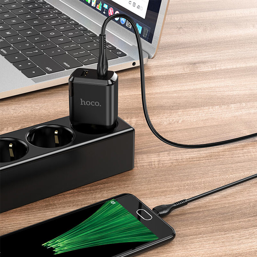 Сетевое зарядное устройство, 2 USB 2.1A 10.5W (N7), HOCO, Type-C, Умная зарядка, белый