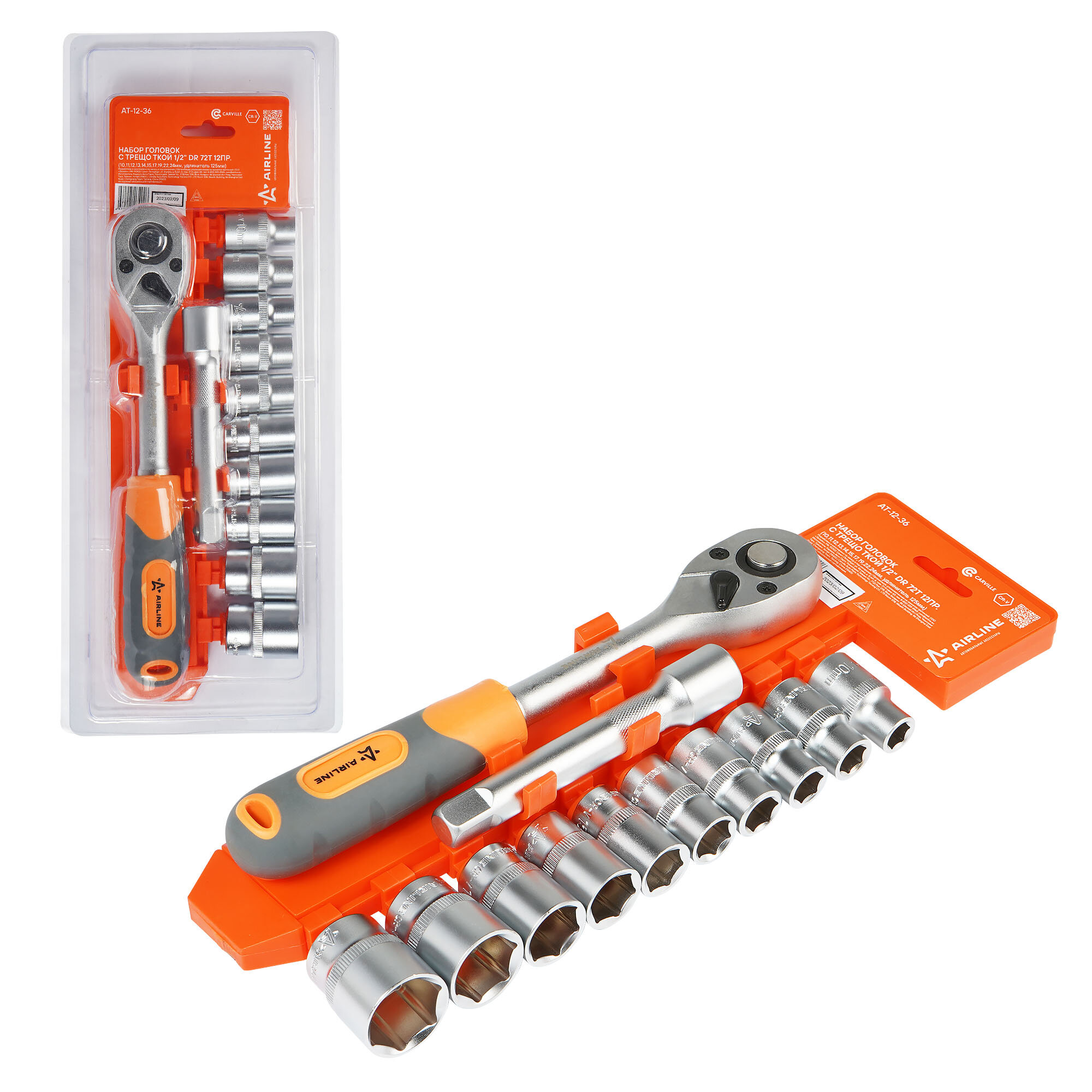 Набор головок с трещоткой 1/2" dr 72т 12пр. (10-15,17,19,22,24мм, удлинит.125мм), airline, at-12-36