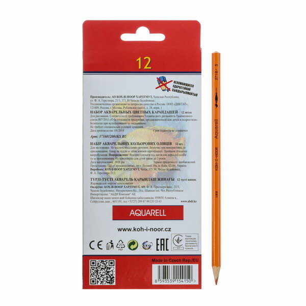 Акварельные карандаши KOH-I-NOOR Набор карандашей акварельных `Fish` KOH-I-NOOR, 12цв.