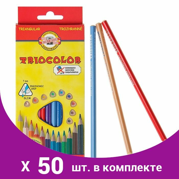 Карандаши цветные KOH-I-NOOR "Triocolor", 12 цветов, трехгранные, грифель 3,2 мм (3132012004KSRU)