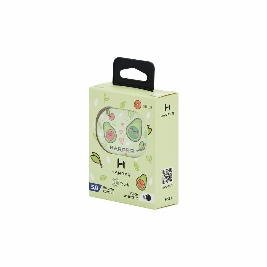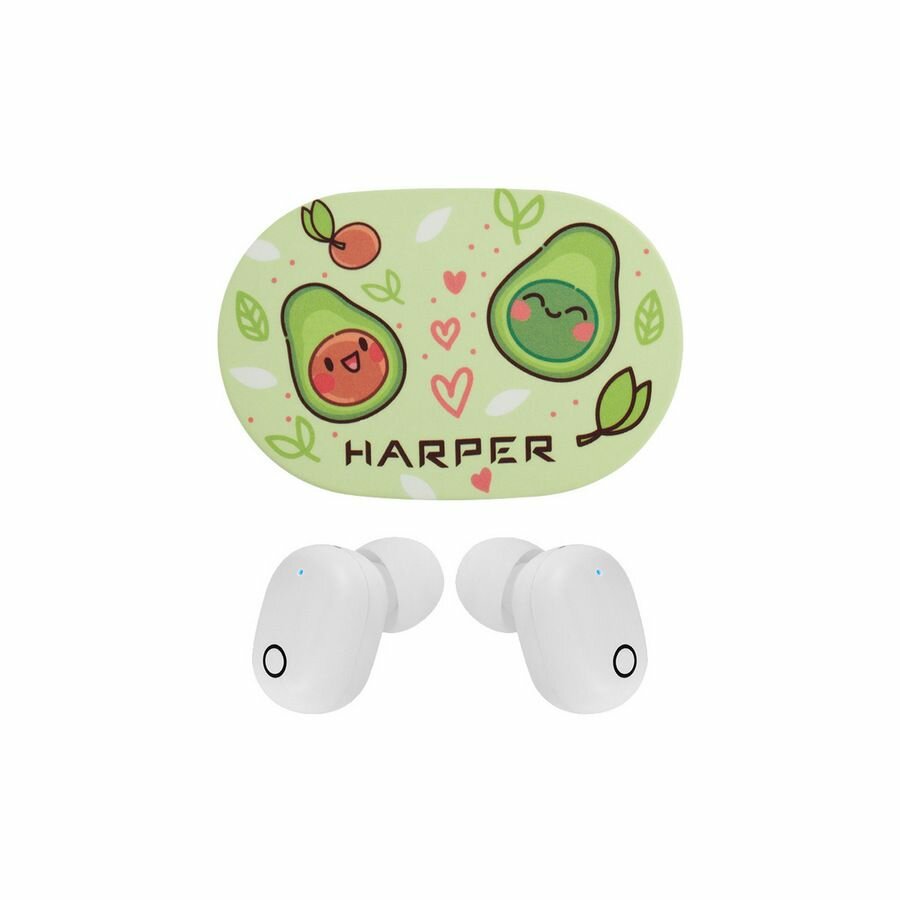Наушники TWS HARPER HB-533, белый, с принтом на кейсе (avocado)