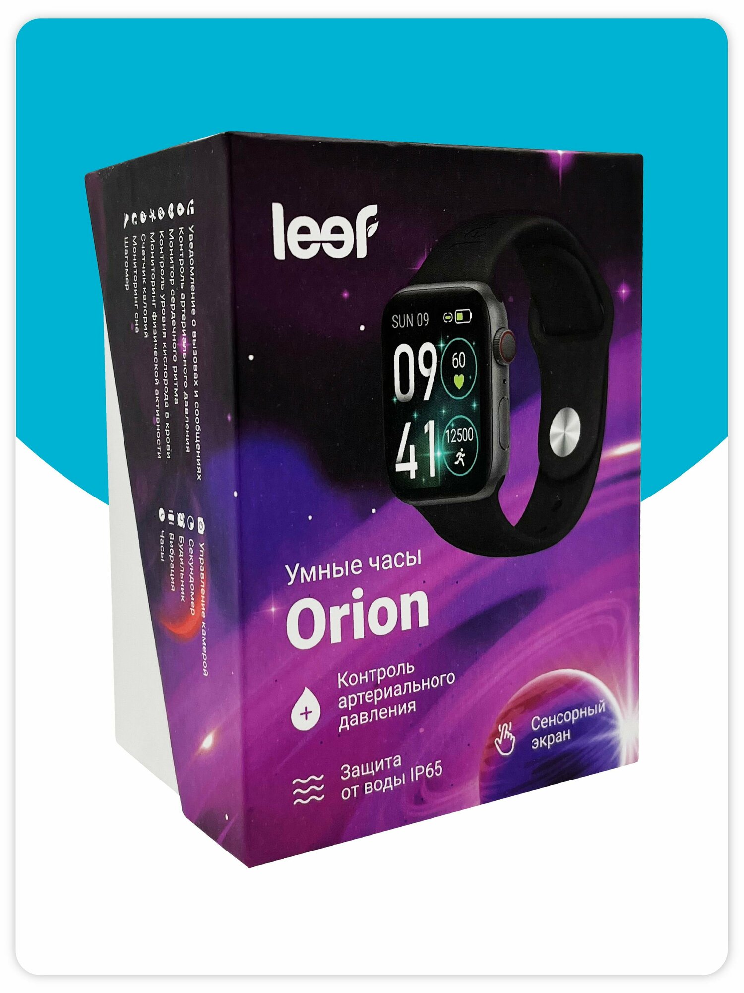 Умные часы LEEF Orion, мониторинг физической активности, пульса, уведомления о вызовах и сообщениях, шагомер, цвет черный
