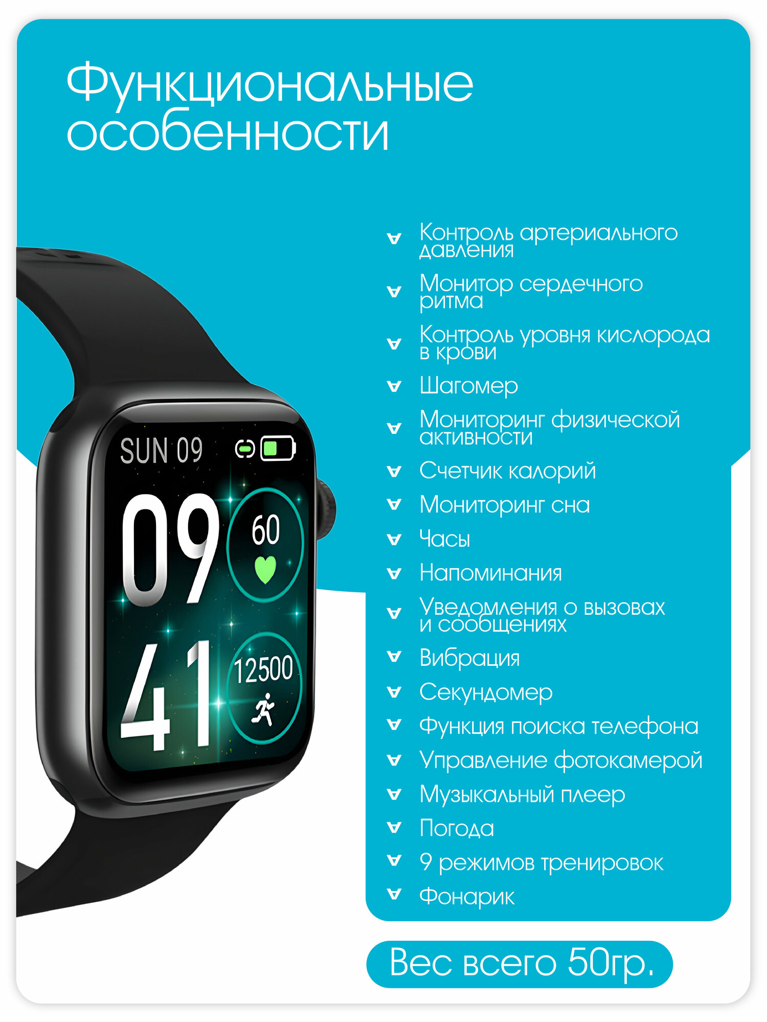 | Плюсы: | счетчик калорий, шагомер, измерение пульса и давления, уровень кислорода в крови, секундомер. |