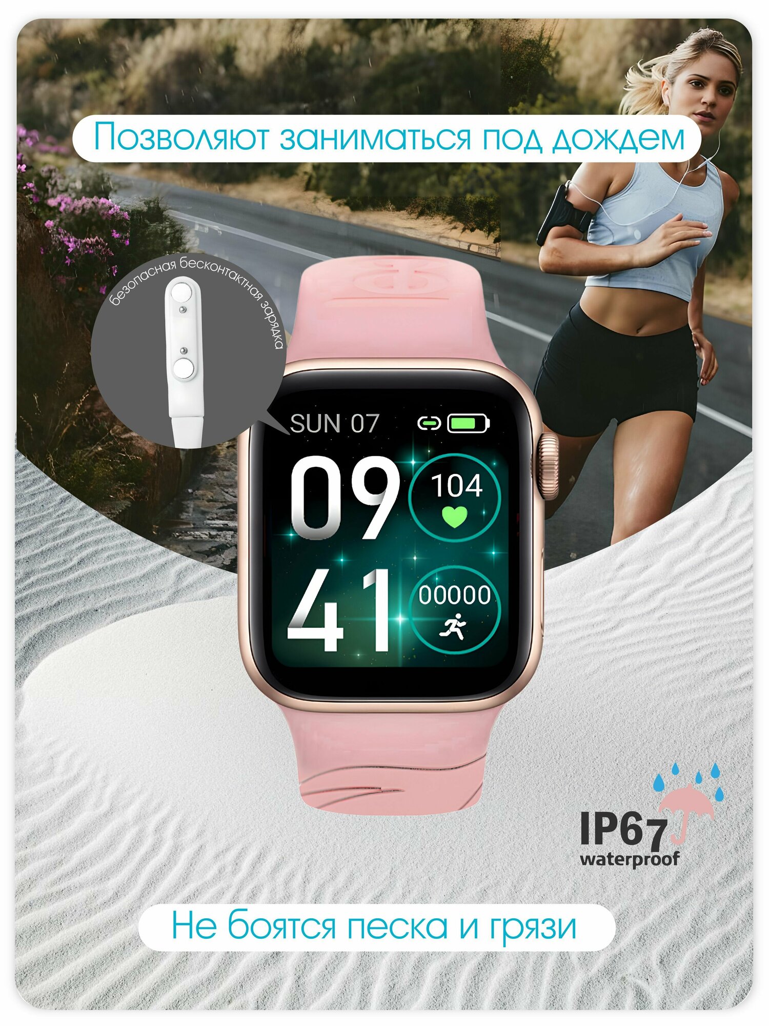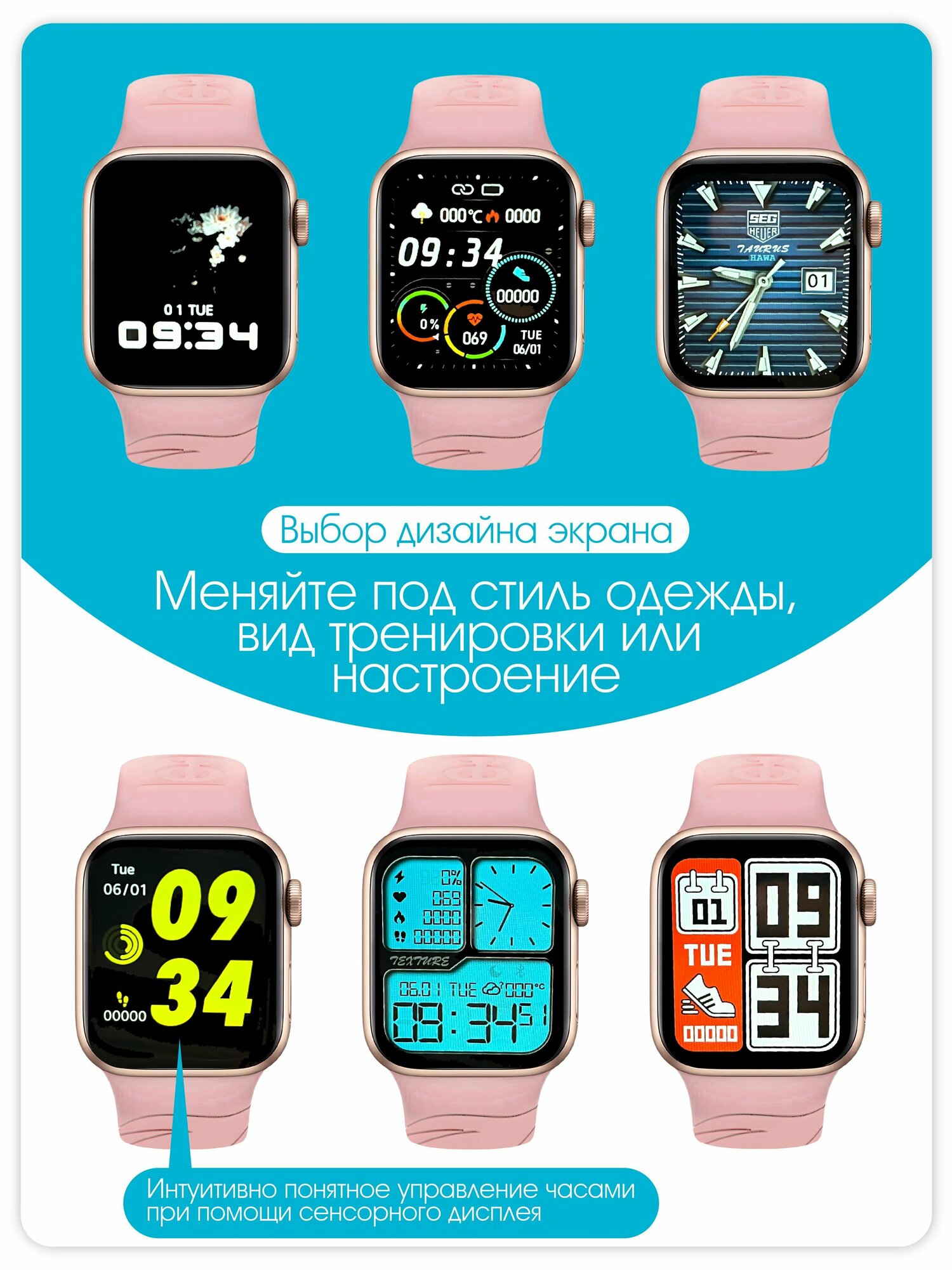| Отзыв: | У часов нежный вид, ремешок хоть и светлый, но совершенно не маркий. Корпус металлический, большой сенсорный экран, есть счетчик шагов, калорий, даже сон мониторят Отличные часики. |