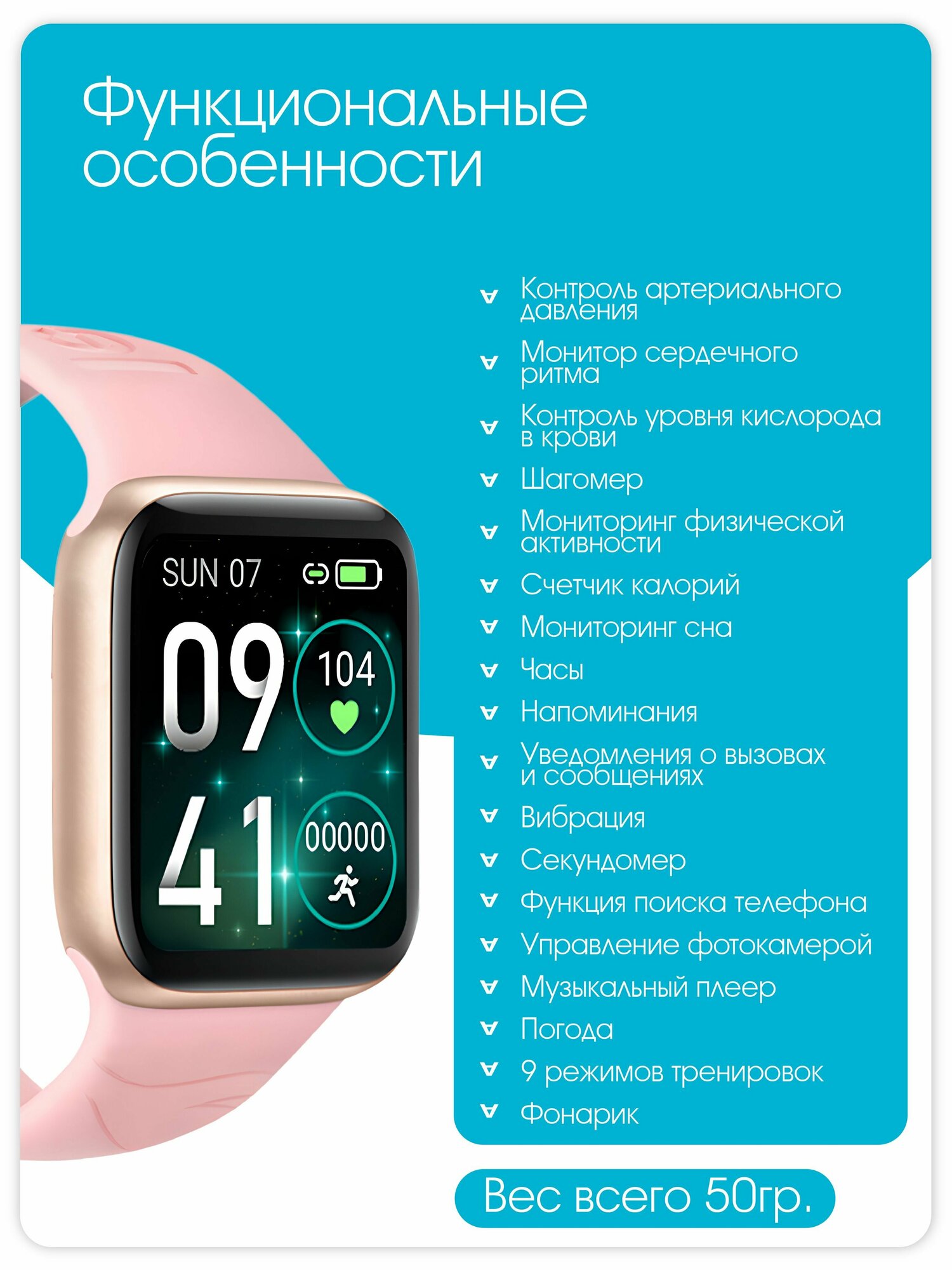 | Плюсы: | счетчик калорий, шагомер, измерение пульса и давления, уровень кислорода в крови, секундомер. |