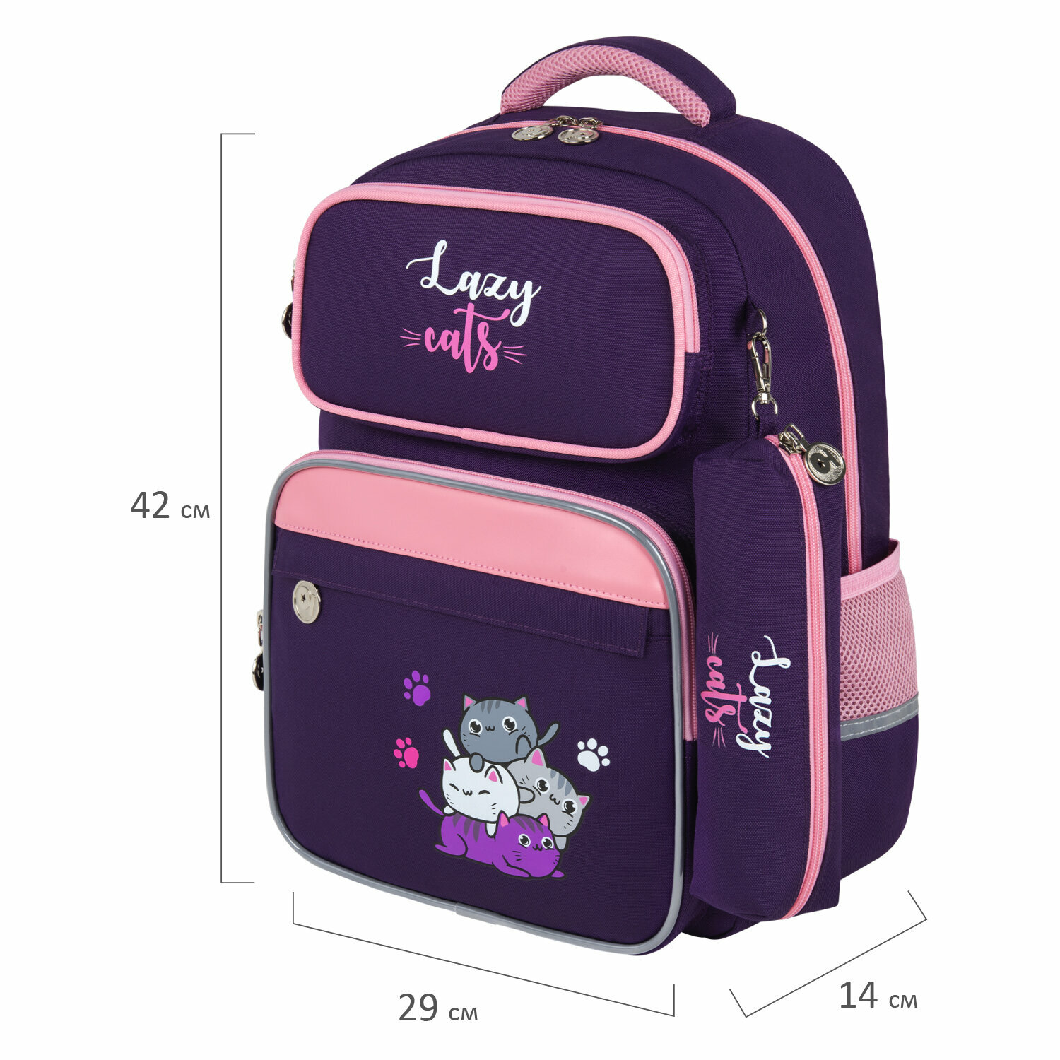 Купить Рюкзак школьный для девочки, ранец для подростка спортивный, портфель детский в школу, эрго спинка, набор с пеналом, Юнландия Cat pile, 272056