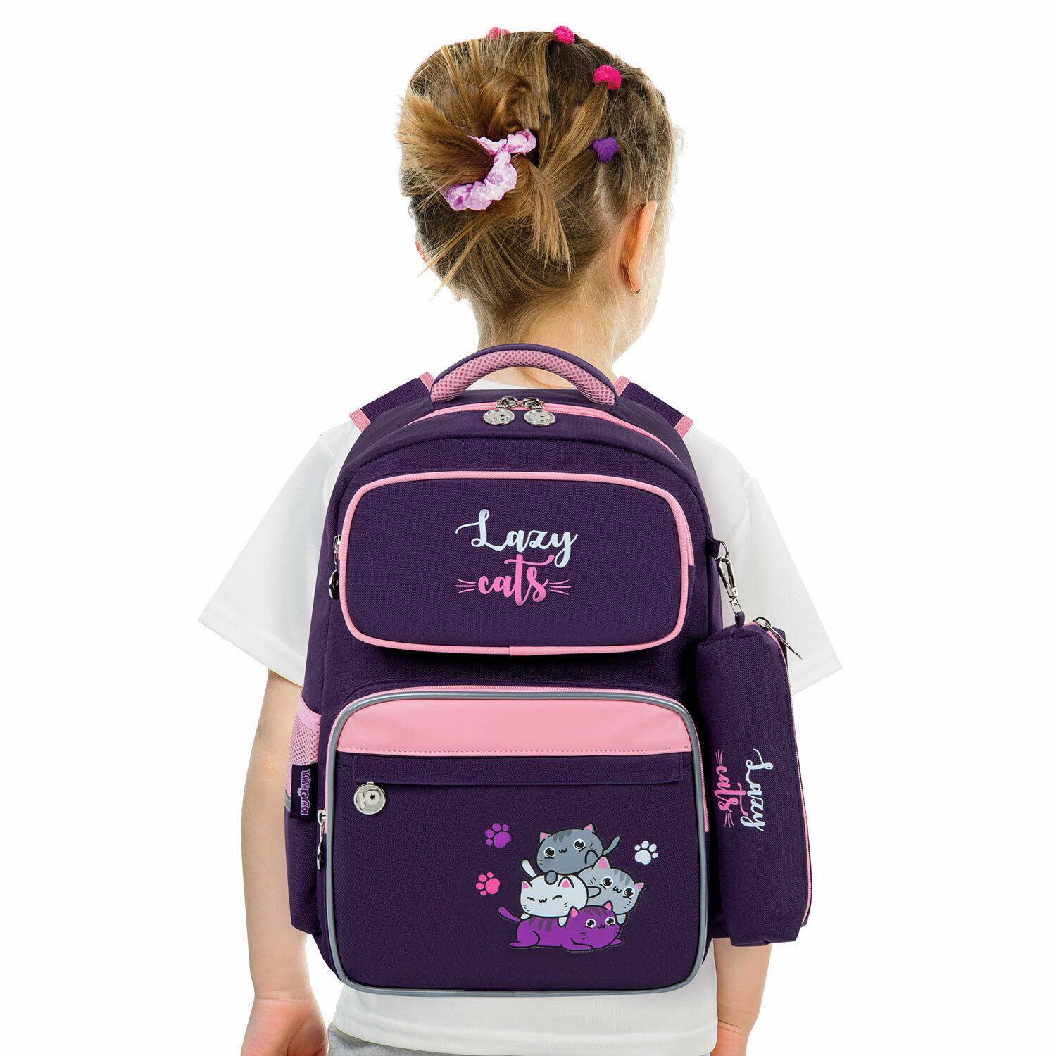 Рюкзак школьный для девочки, ранец для подростка спортивный, портфель детский в школу, эрго спинка, набор с пеналом, Юнландия Cat pile,