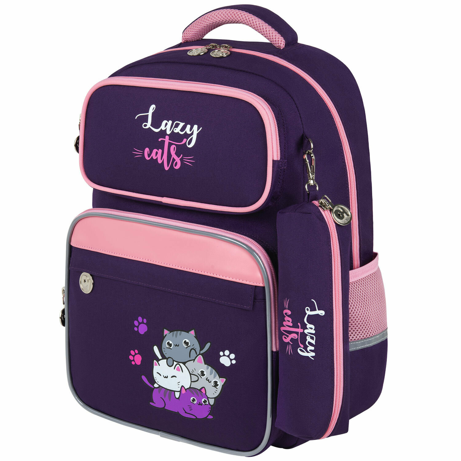 Рюкзак школьный для девочки, ранец для подростка спортивный, портфель детский в школу, эргономичная спинка, набор с пеналом, Юнландия Bored cat, 272055