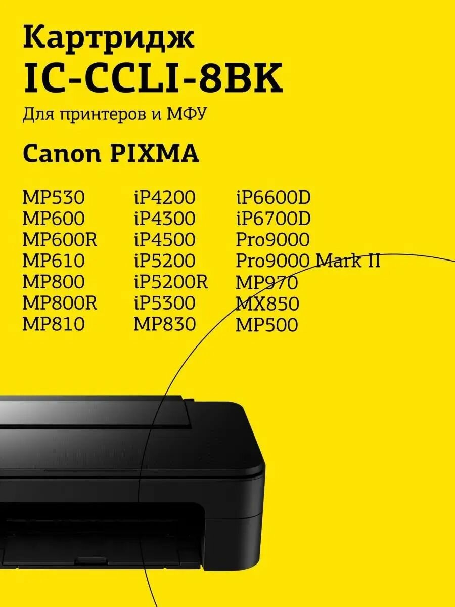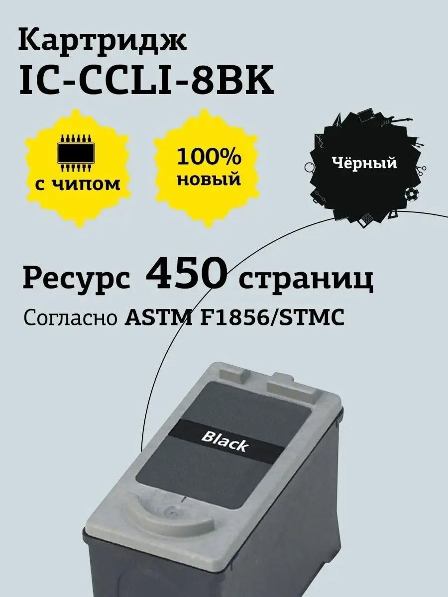 IC-CCLI-8BK Картридж для Canon PIXMA iP4200/4300/5200/Pro9000/MP500/600, черный, с чипом