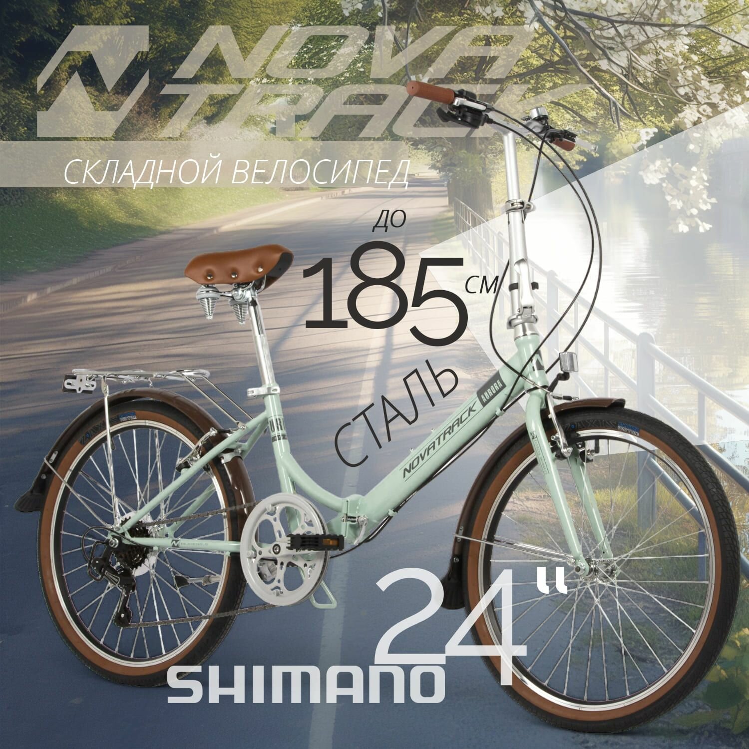 Купить Складной велосипед Novatrack 24" складной, AURORA, светло-бирюзовый, Shimano 6 speed, TY21/TS38