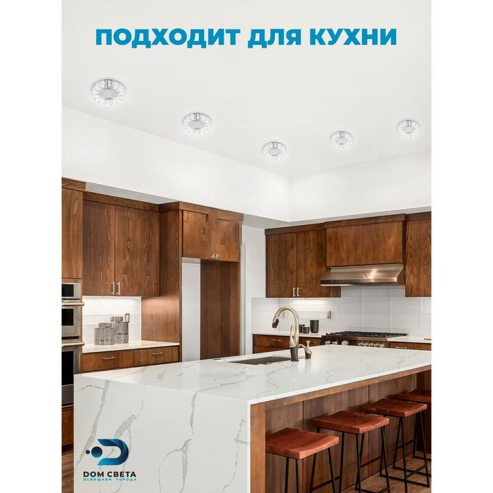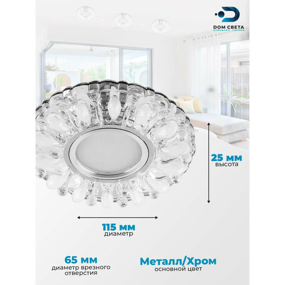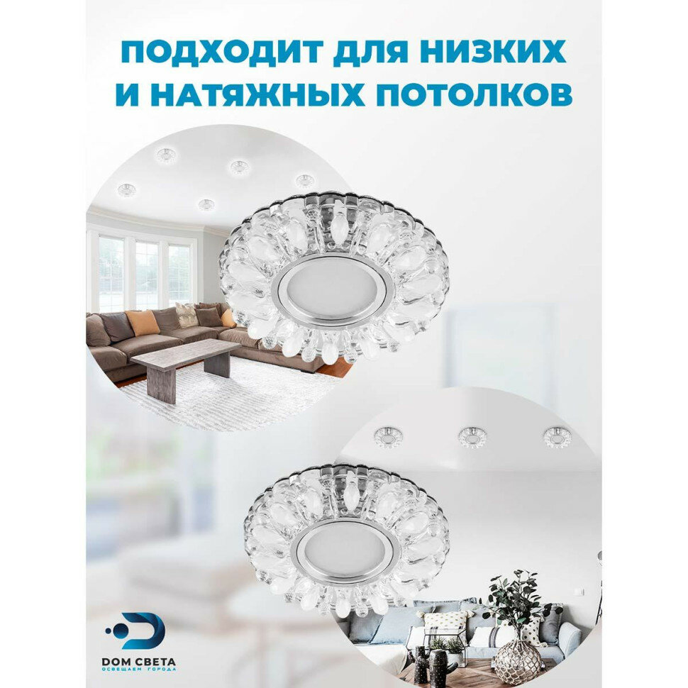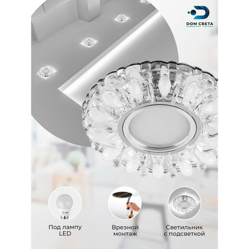 Светильник потолочный встраиваемый со светодиодной подсветкой 15LED*2835 SMD 4000K, MR16 50W G5.3, прозрачный-матовый, хром, CD914 с драйвером в комплекте