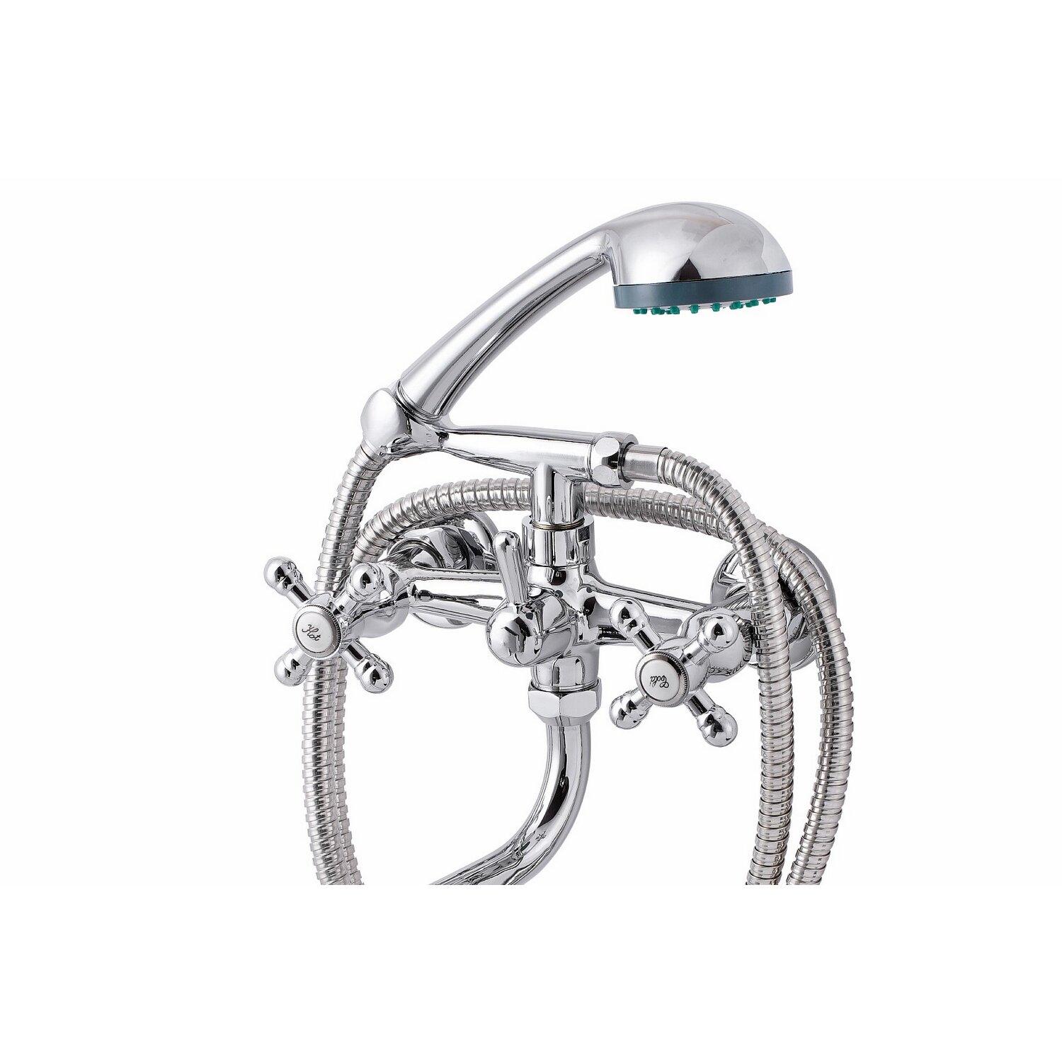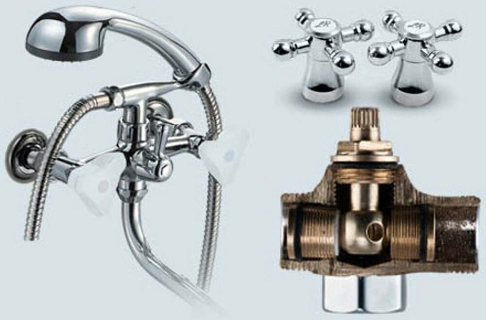| Комплектация | корпус — 1 шт. / узел излива в сборе — 1 шт. / вентильная головка в сборе (с керамическими пластинами или резиновой манжетой) — 2 шт. / маховик крест металлический в сборе — 2 шт. / эксцентрик с отражателем — 2 шт. / душевой шланг — 1 шт. / душевая лейка — 1 шт. / держатель лейки на корпус — 1 шт. |