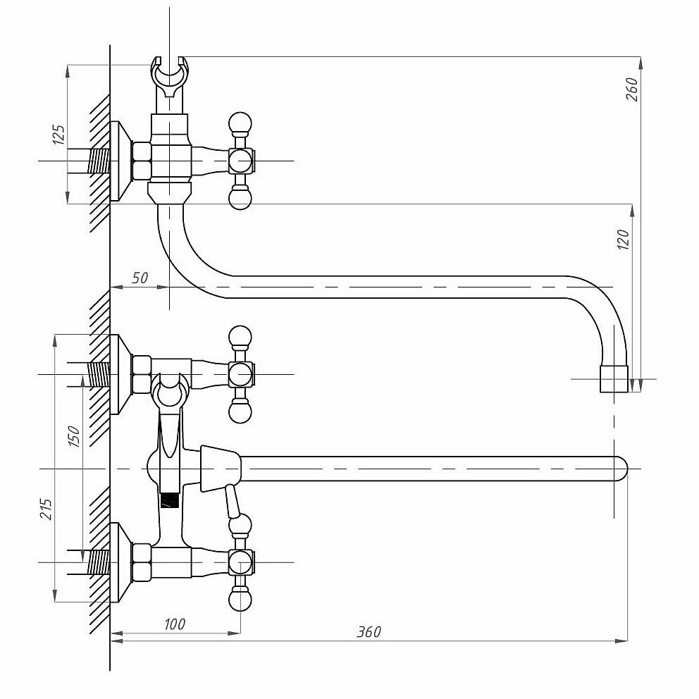 | Дополнительная информация | Оборудование является двухрычажным, т.е. регулирование параметров потока горячей и холодной воды (напор, температура) происходит при помощи двух отдельных вентилей и керамических кран-букс. Маховики Крест металлические эргономичной формы удобны при вращении и популярны среди пользователей. Форма креста обеспечивает максимально комфортный захват и поворот. Цветовая индикация отсутствует, присутствует надпись типа воды hot/cold. Излив с аэратором позволяет предотвратить разбрызгивание воды. Держатель душевой леки расположен на корпусе. |