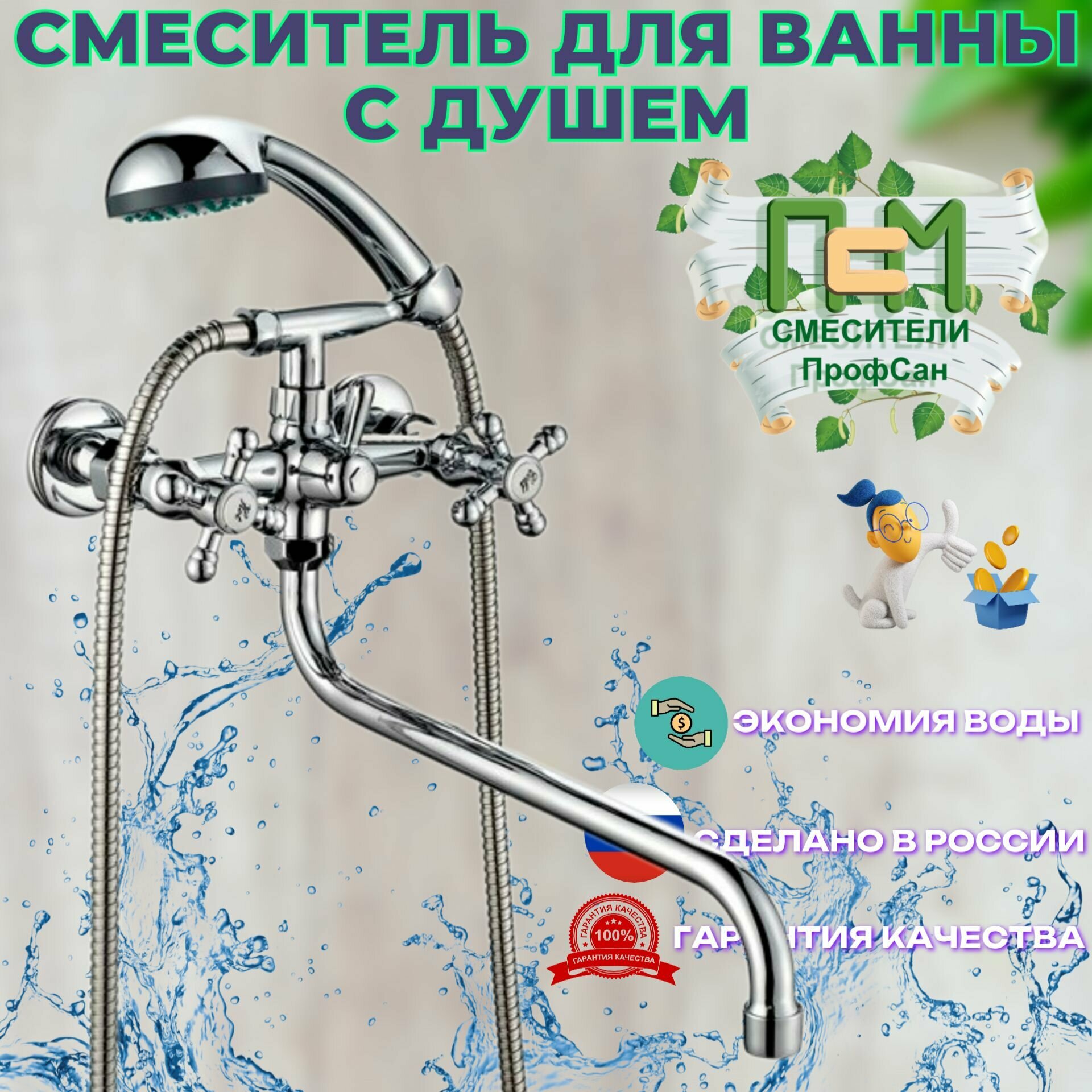 Смеситель для ванны с душем Профсан ПСМ-157-К/89, с длинным изливом, двухвентильный, хром интересное: