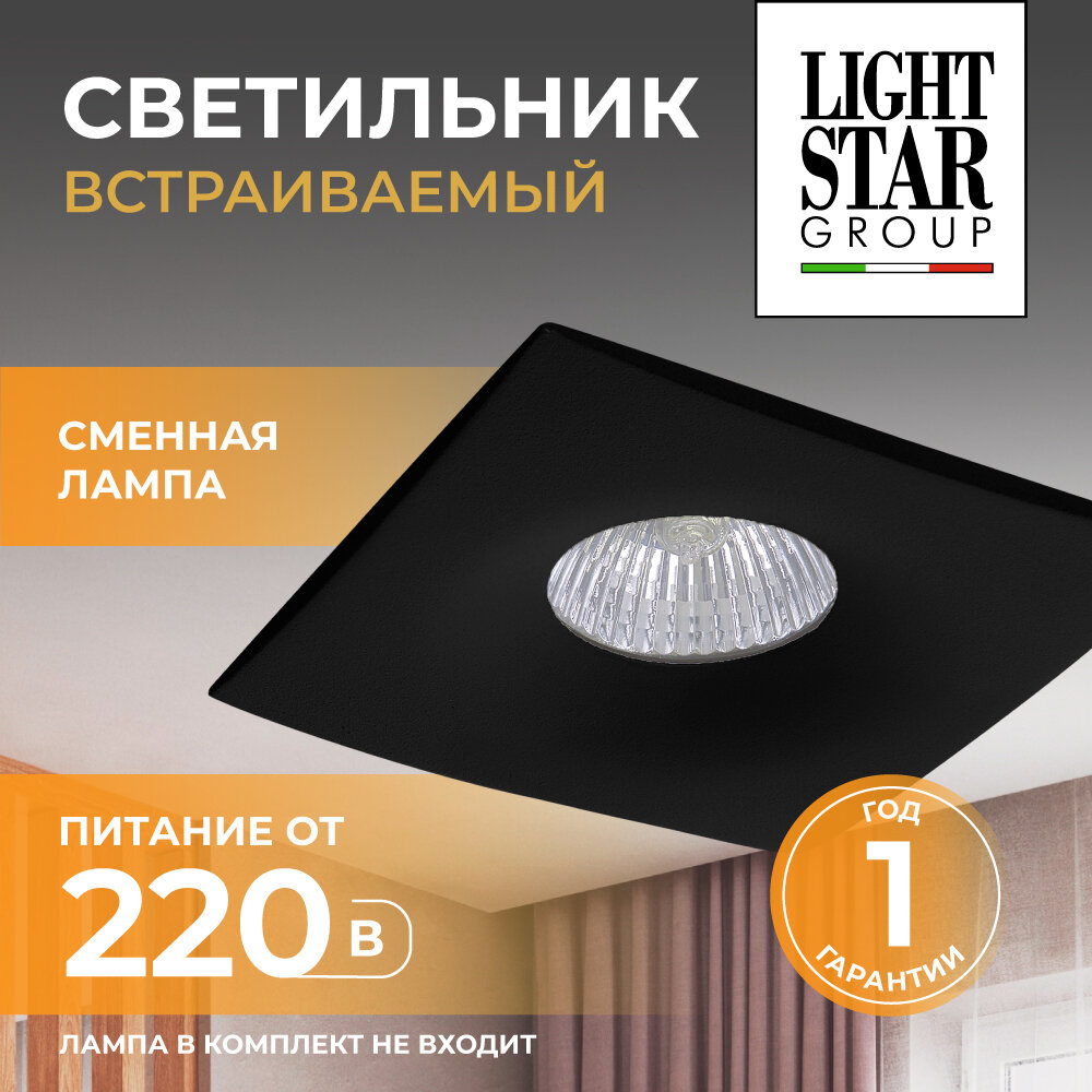 Встраиваемый светильник Lightstar Levigo 010037, GU5.3, 50Вт, кол-во ламп:1шт., Черный