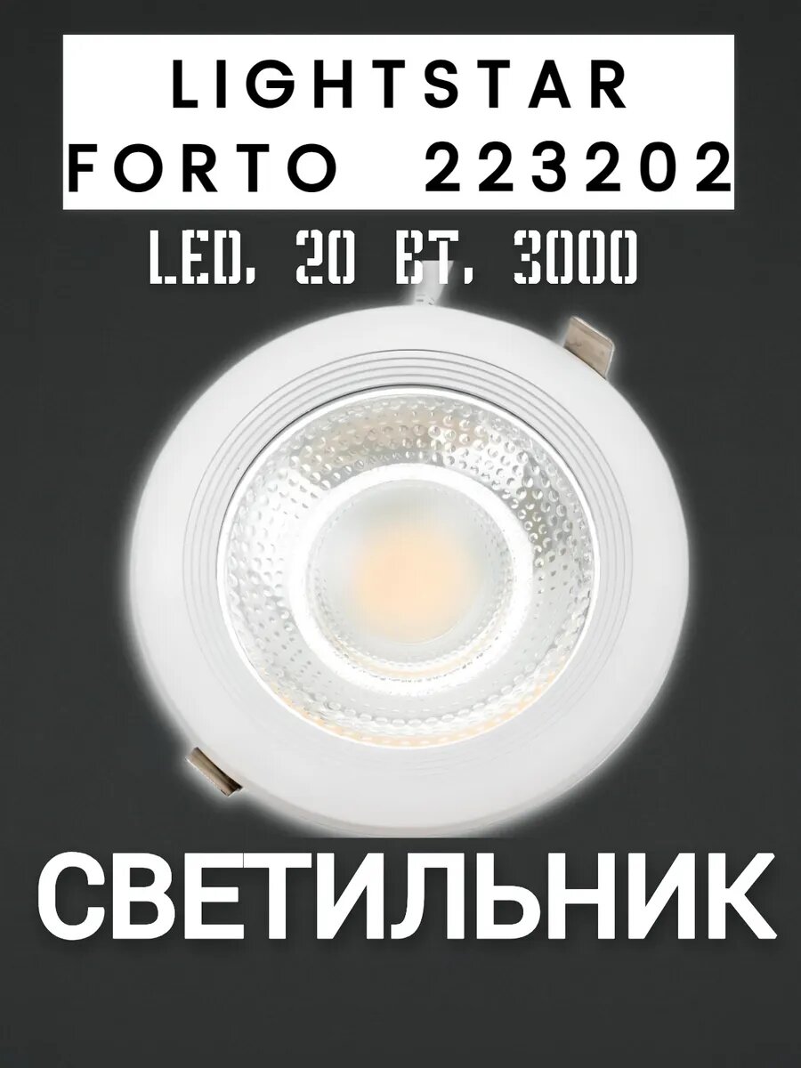 Светильник Lightstar Forto 223202, LED, 20 Вт, 3000, теплый белый, цвет арматуры: белый, цвет плафона: бесцветный