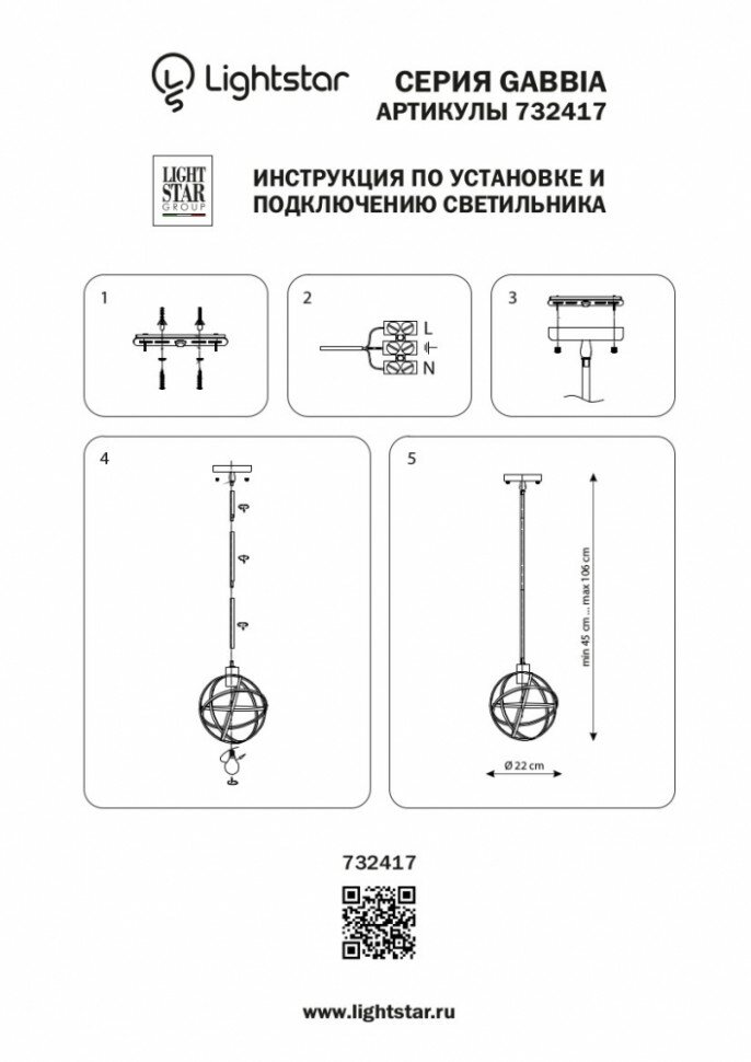 Lightstar 732417 Люстра GABBIA 1х40W E27 черный