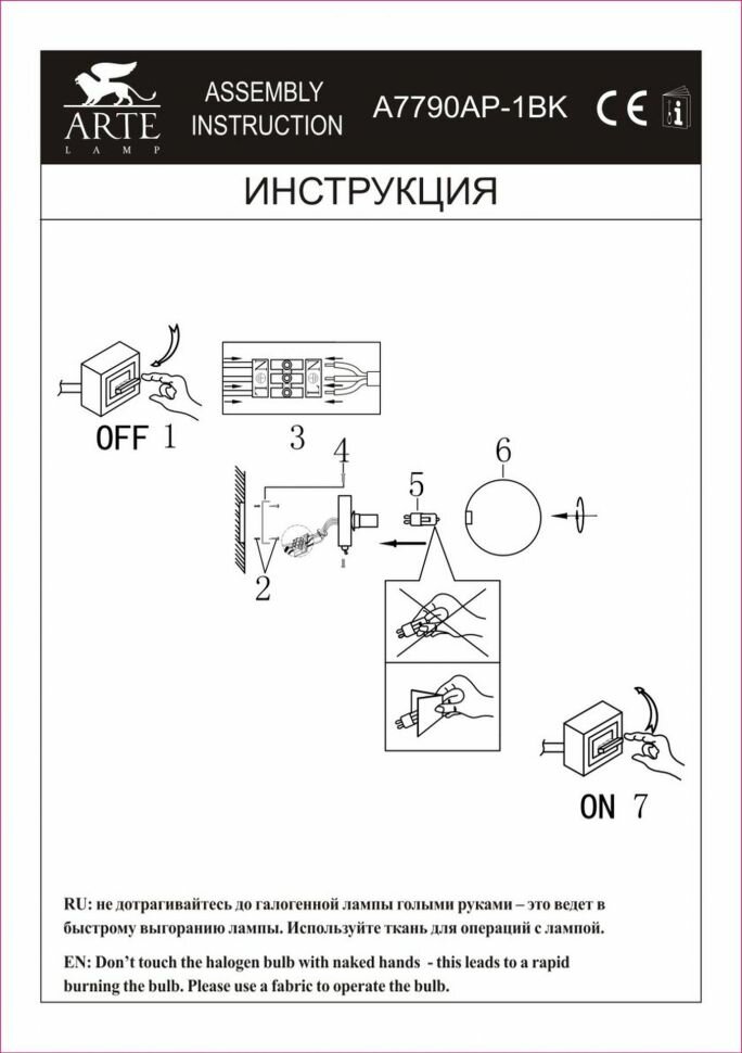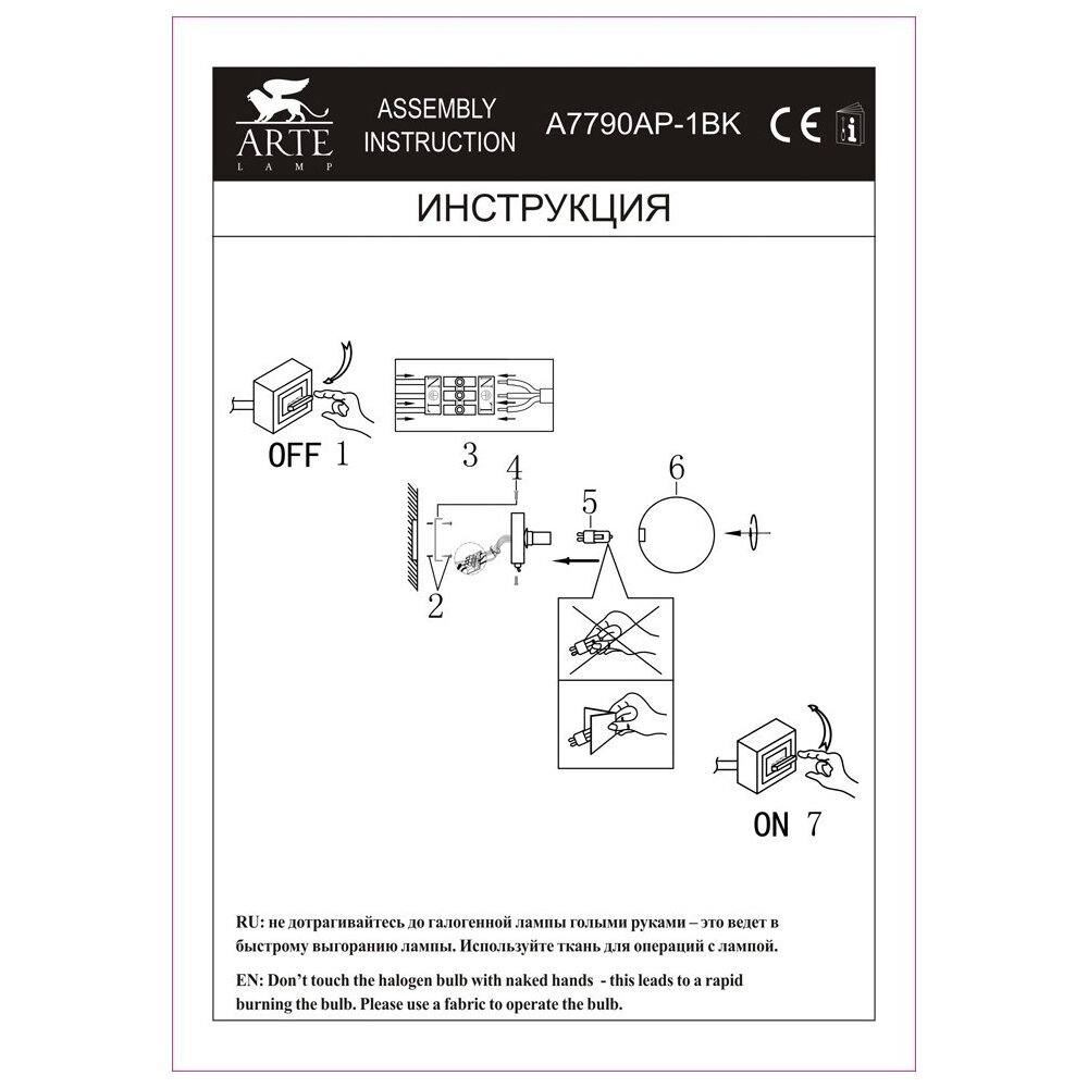 | Комплектация | бра Arte Lamp A7790AP-1BK |