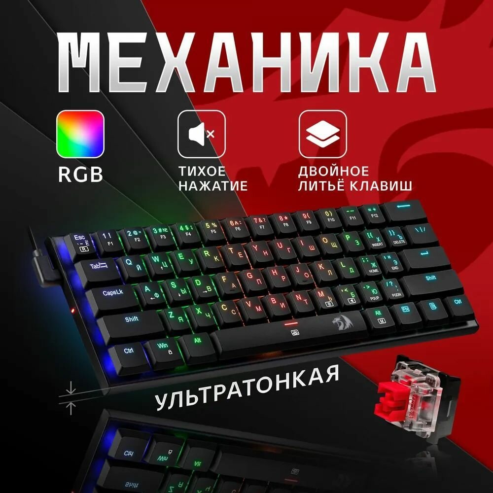 70619, Defender Redragon Anivia RGB, Redragon Механическая клавиатура Anivia RGB, тихая, 61 клавиш интересное:
