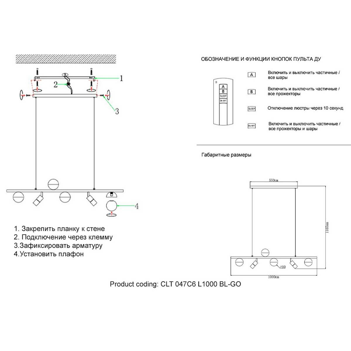 Светильник подвесной Crystal Lux CLT 047C6 L1000 BL-GO