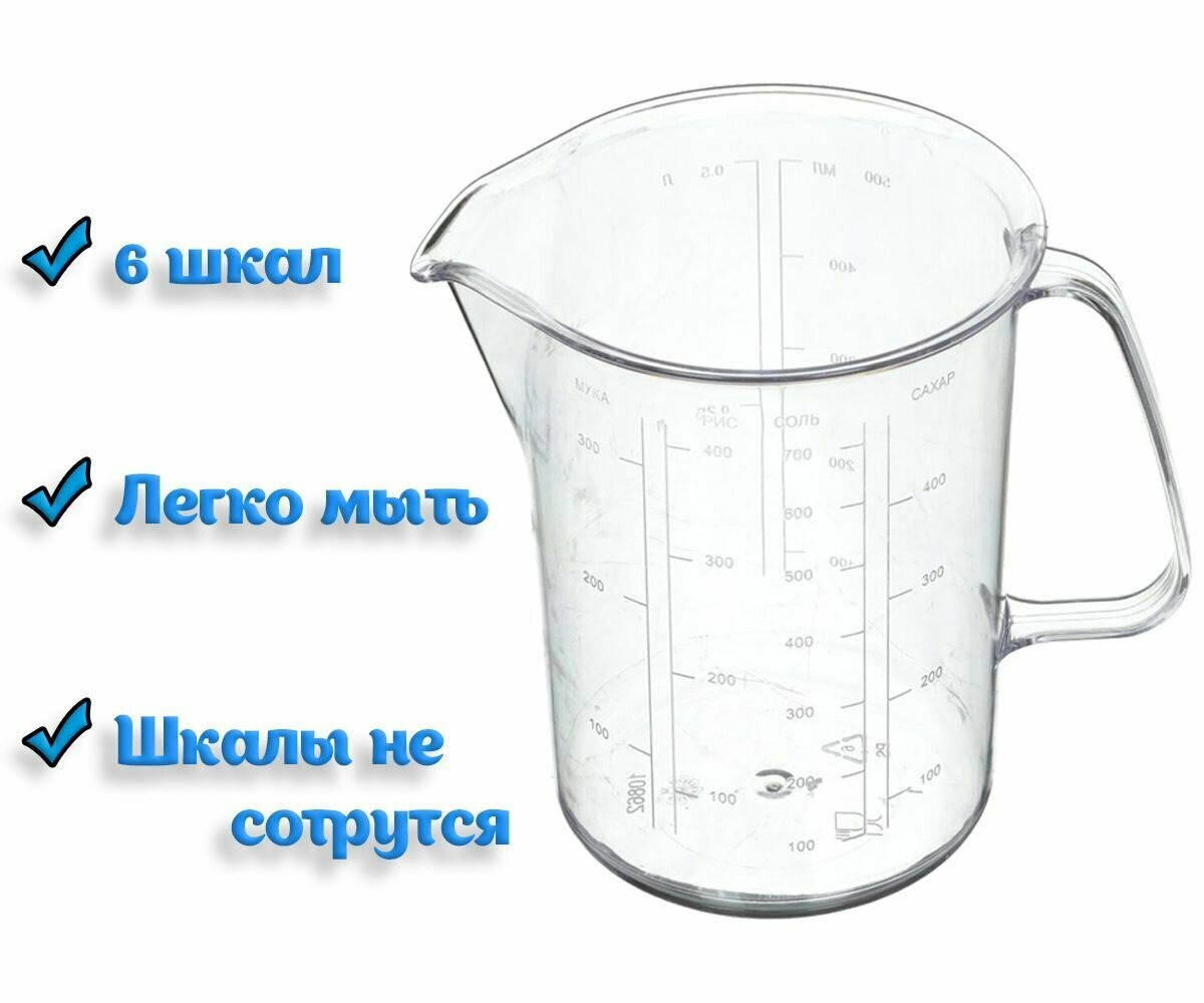 Стакан мерный (мензурка) пластиковый, с ручкой, 500 мл