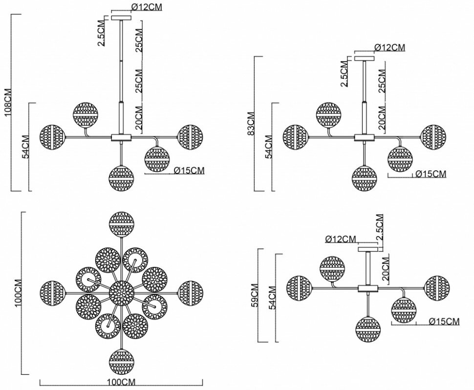 Подвесная люстра Arte Lamp Acapulco A1007SP-12GO, G9, кол-во ламп:12шт, Золото