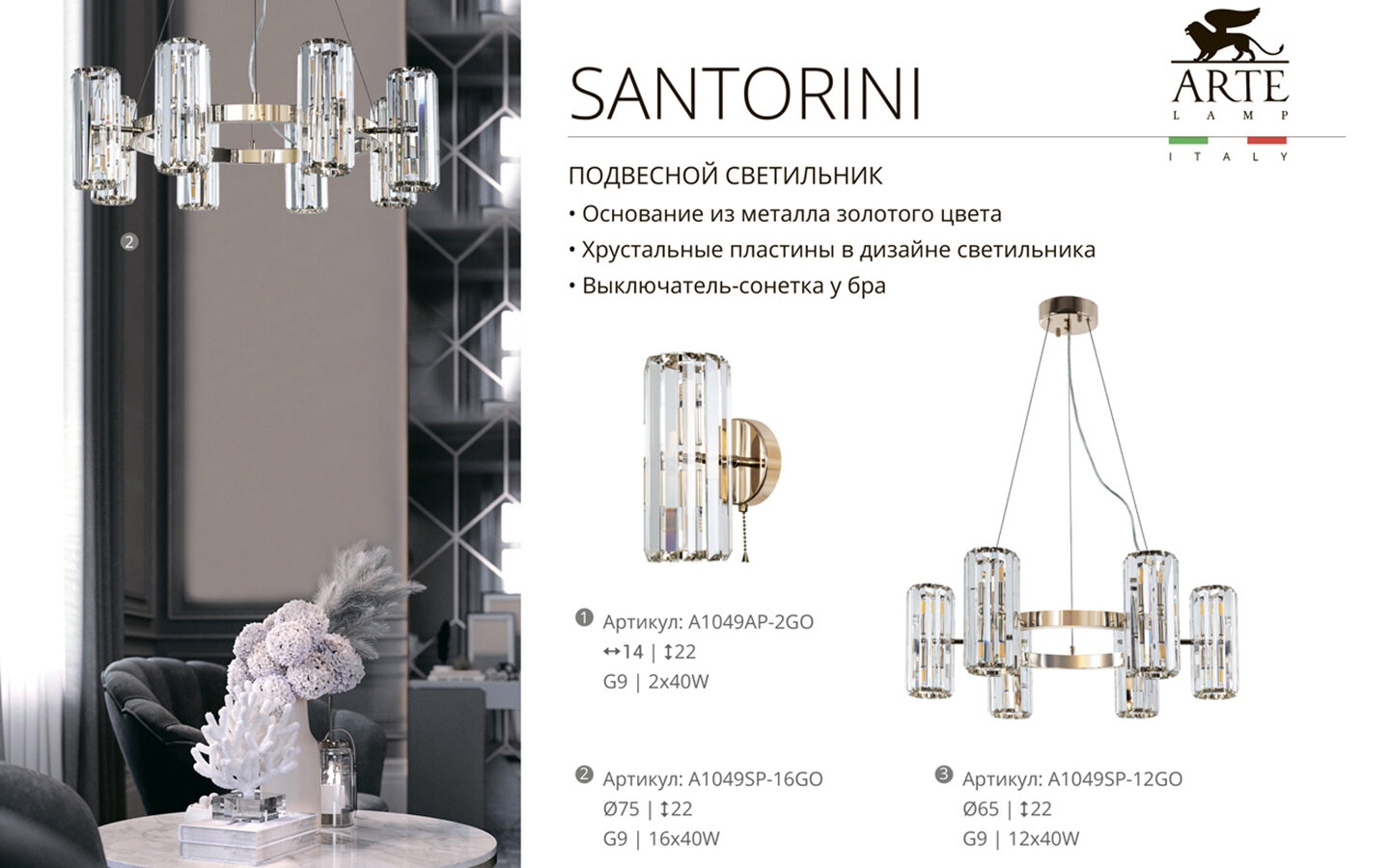 СохранитьПодвесной светильник Arte Lamp Santorini A1049SP-16GO интересное: