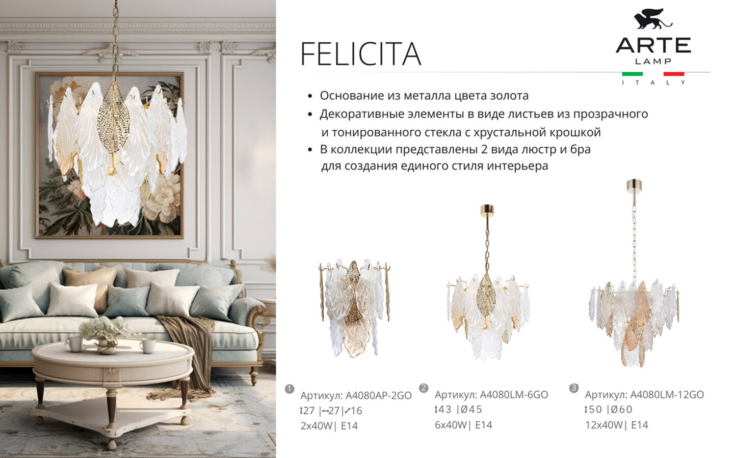 Ниже Вы можете прочитать отзывы на Подвесная люстра ArteLamp FELICITA A4080LM-6GO, ознакомится с подробными характеристиками, посмотреть интересные обзоры и фотографии на Подвесная люстра ArteLamp FELICITA A4080LM-6GO.