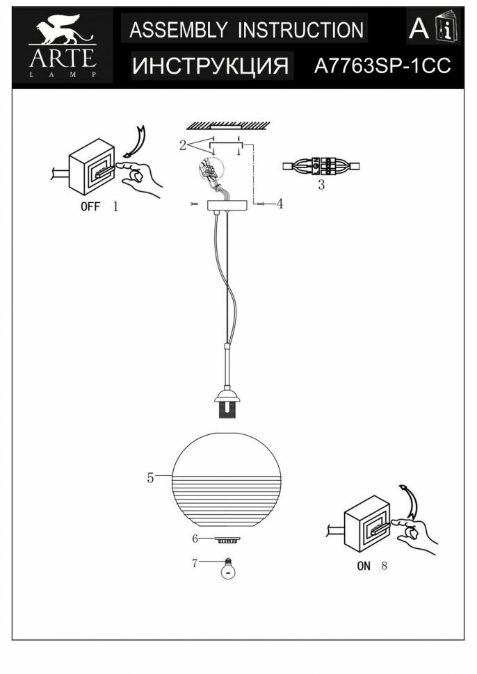 Подвесной светильник ARTE Lamp A7763SP-1CC