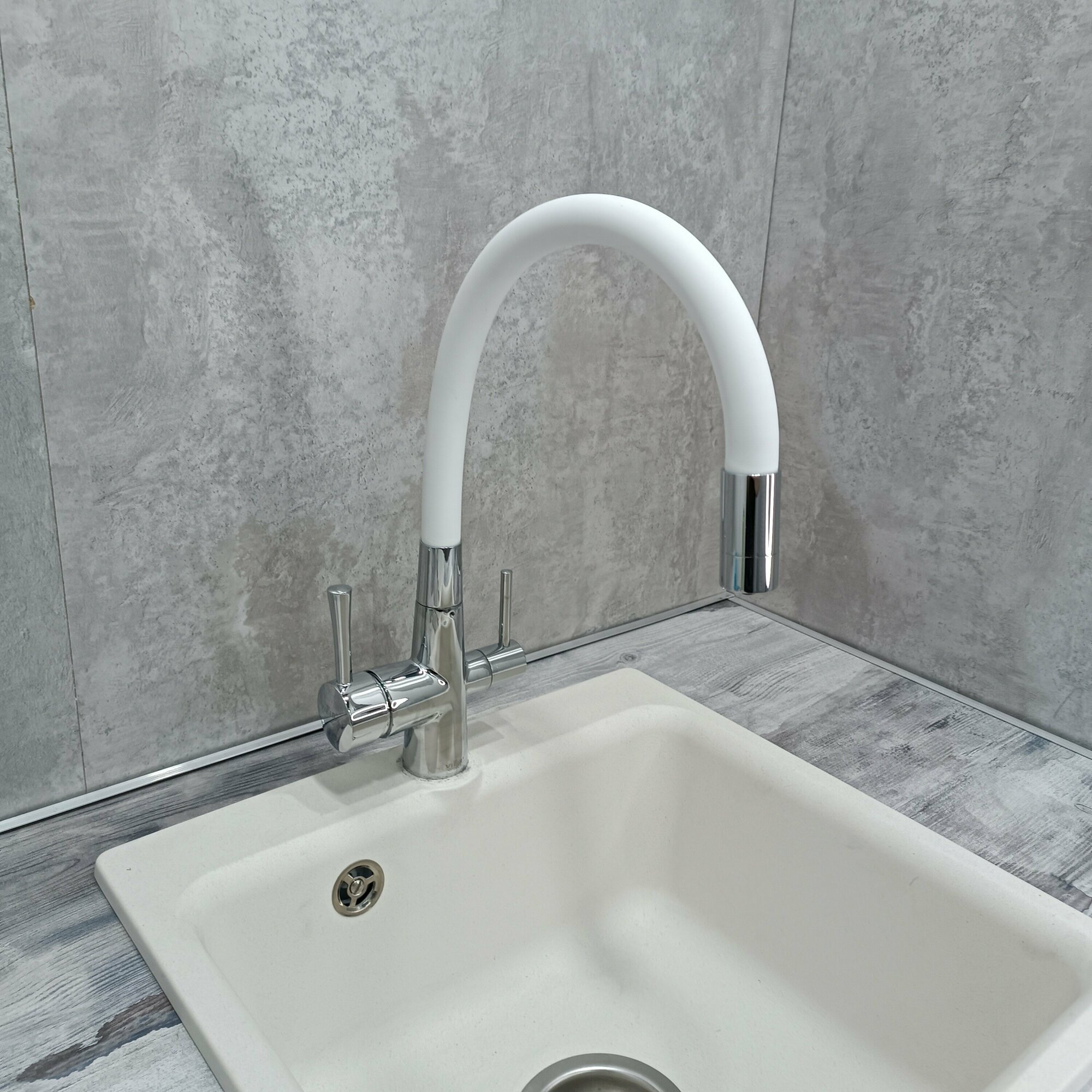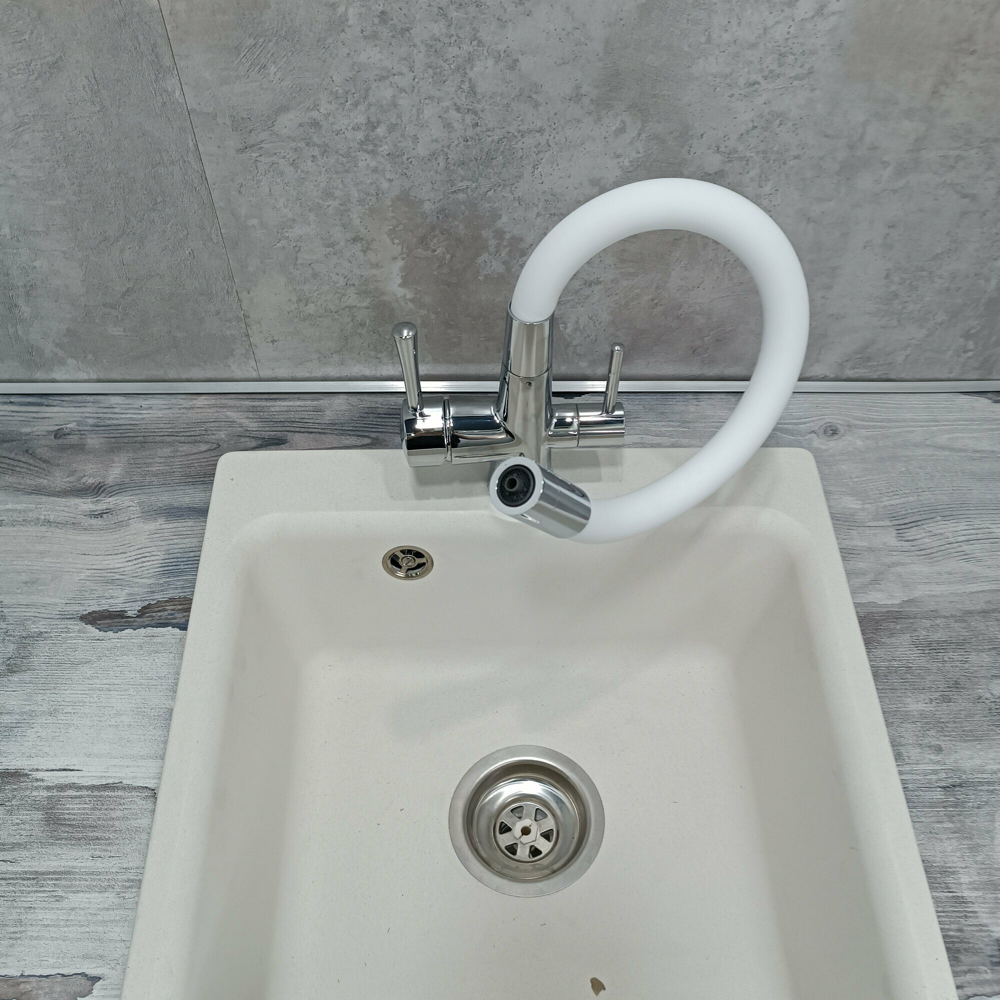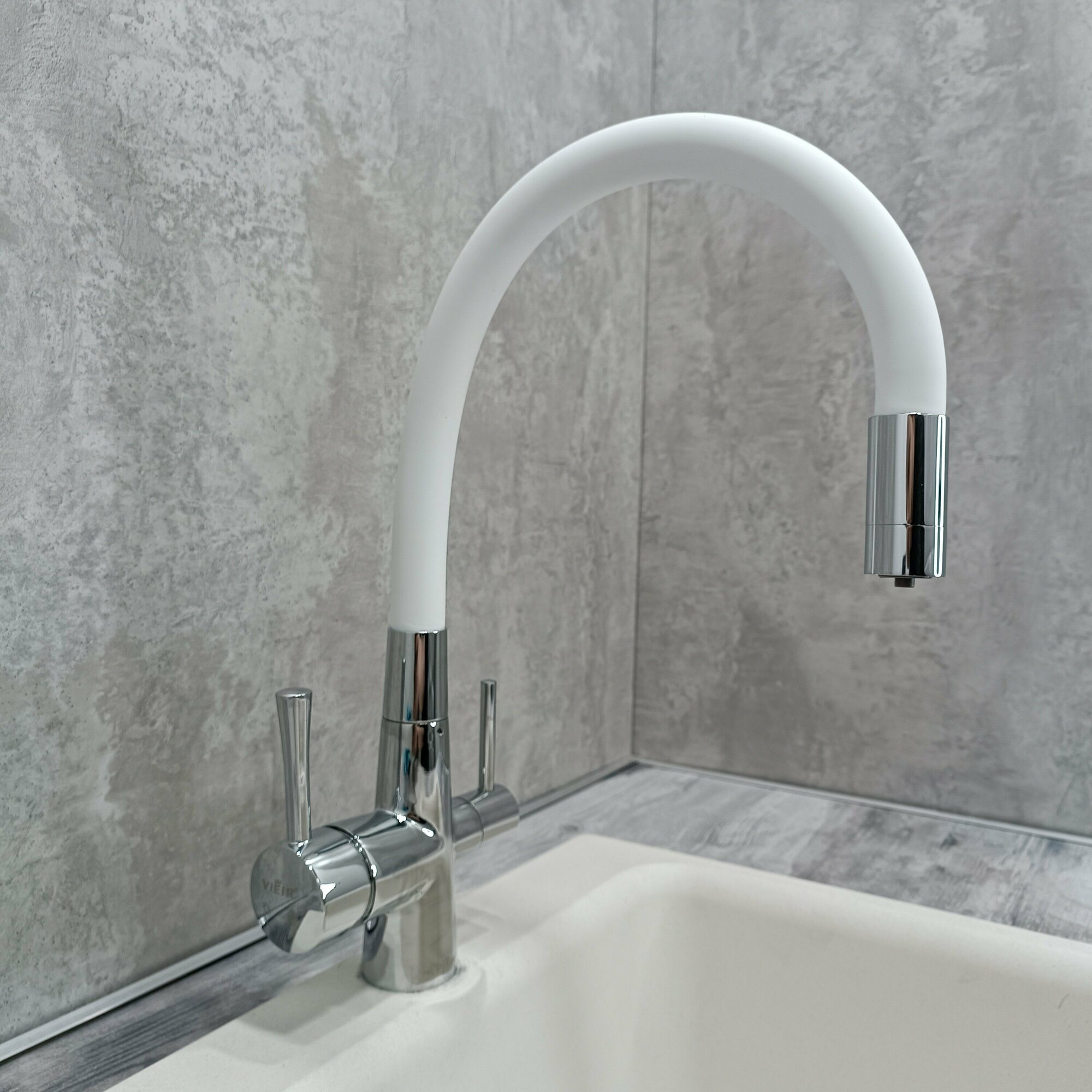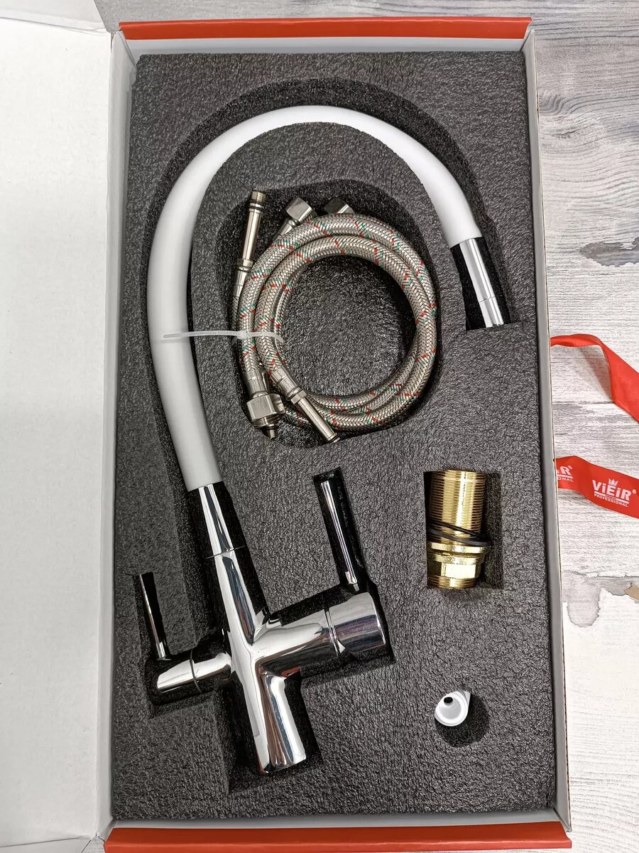 Смеситель для кухни с гибким изливом и под фильтр ViEiR белый/хром